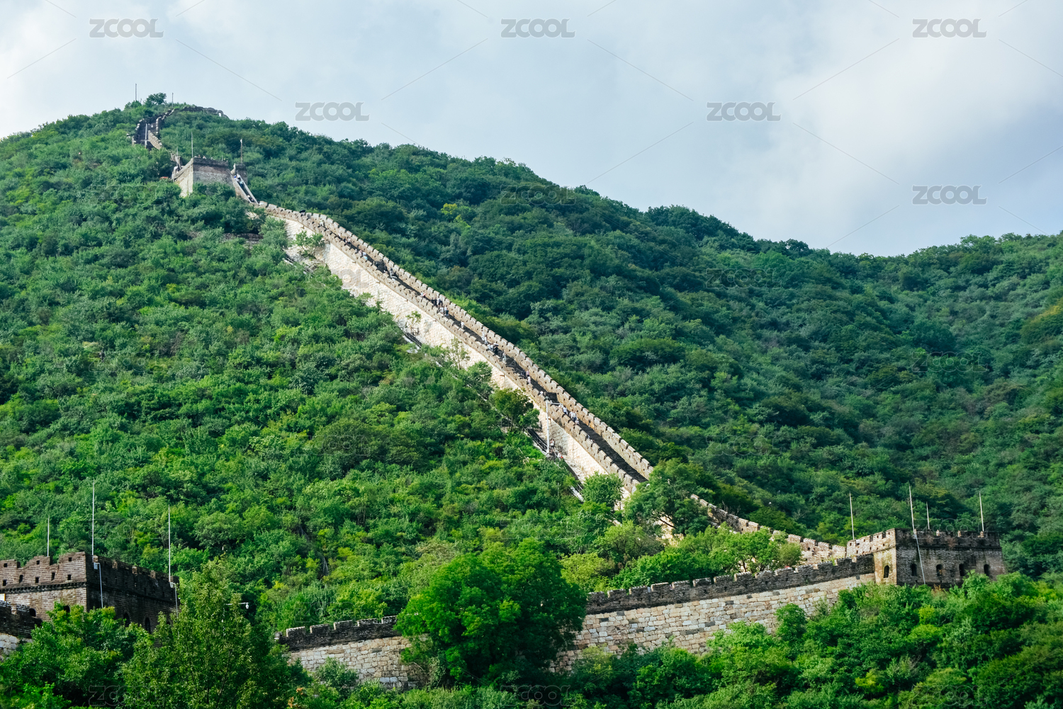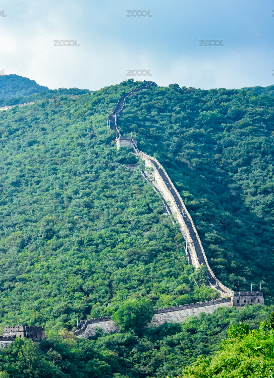 夏季北京慕田峪长城好汉坡和连绵山脉的景观