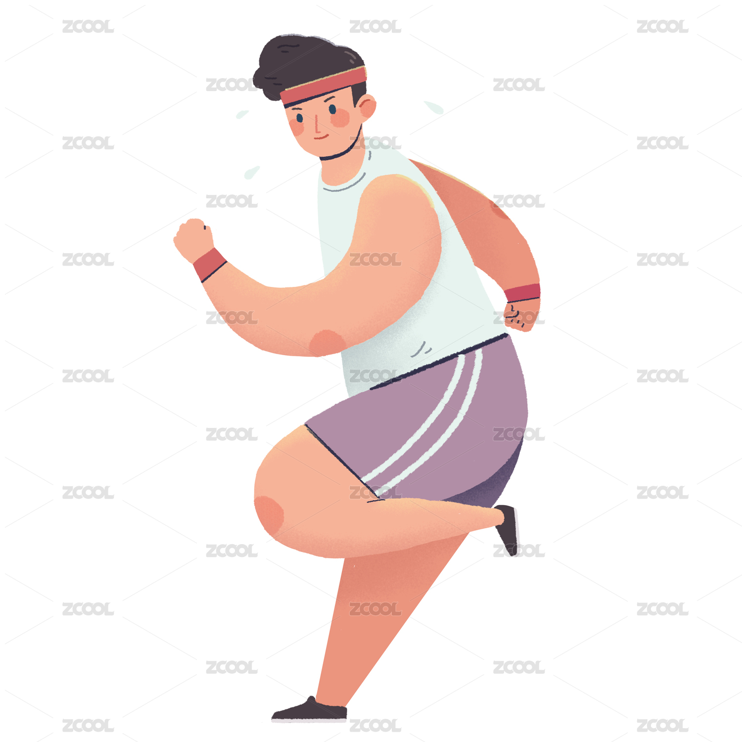 跑步中的男性胖子矢量插画