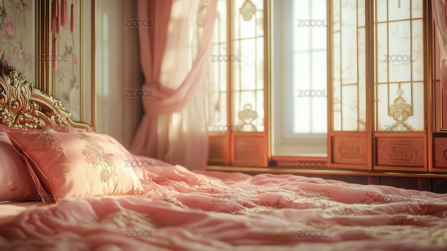 阳光洒进粉色公主卧室