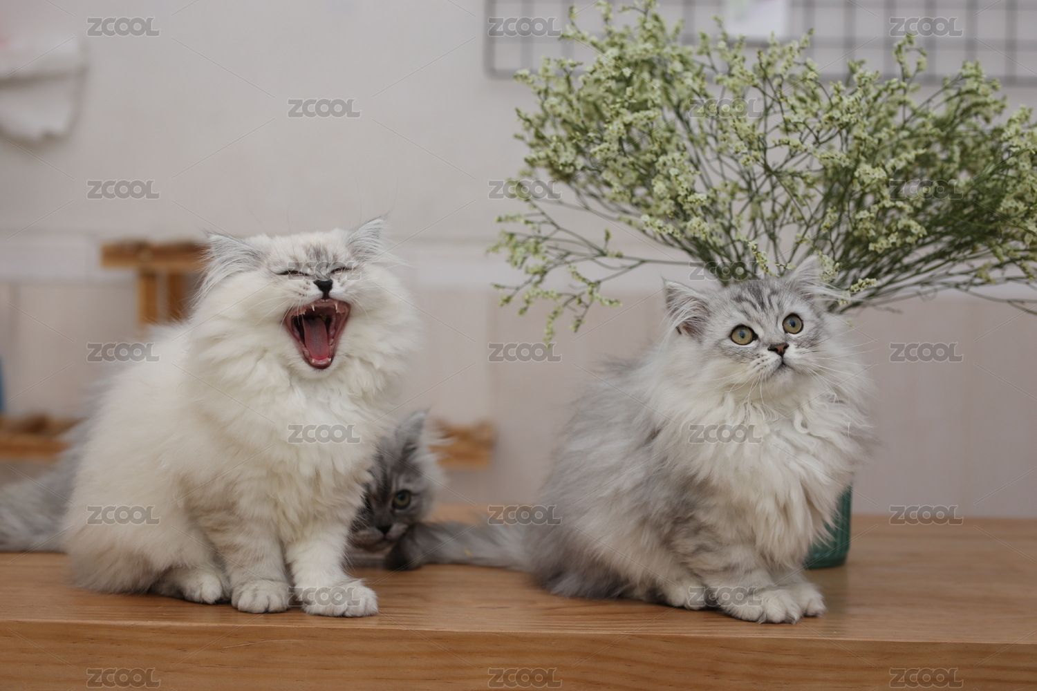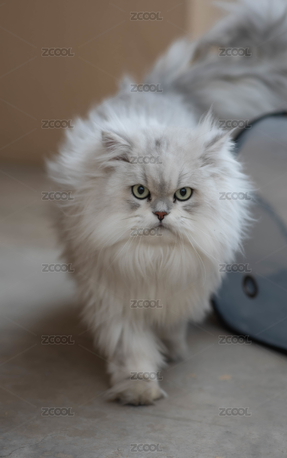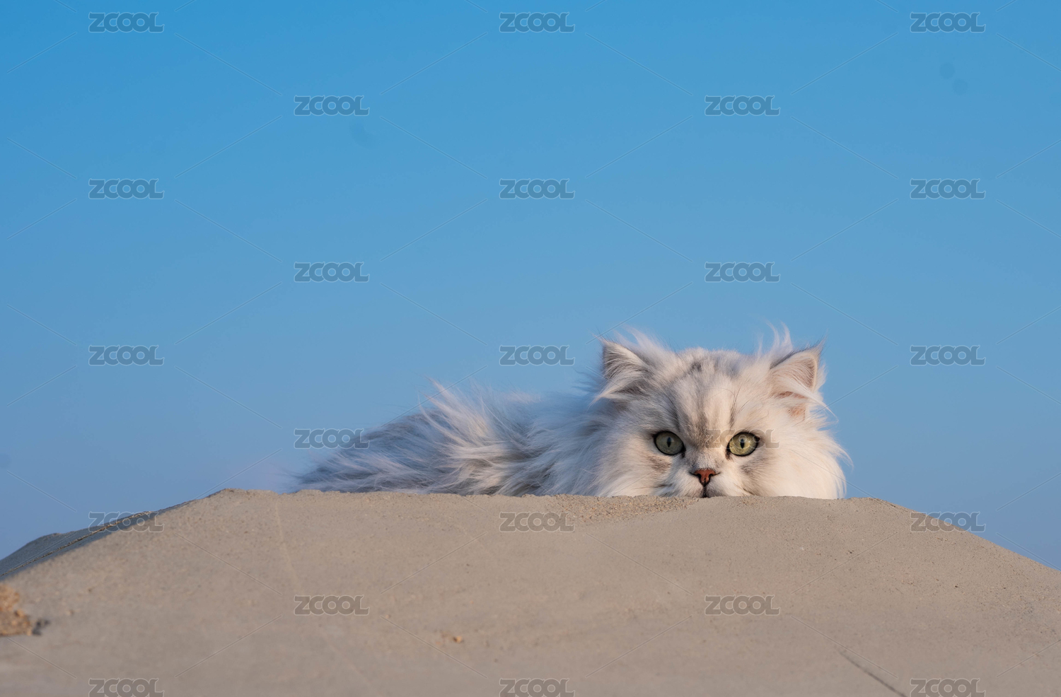 在天台上抬着头坐着的金吉拉长毛猫上半身