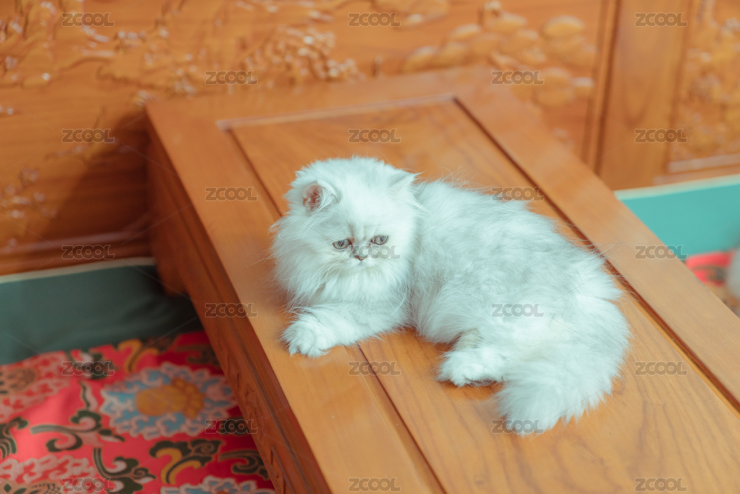 暖阳下一只在天台上趴着的金吉拉长毛猫