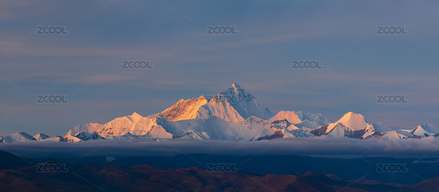 中国西藏喜马拉雅山脉珠穆朗玛峰日照金山