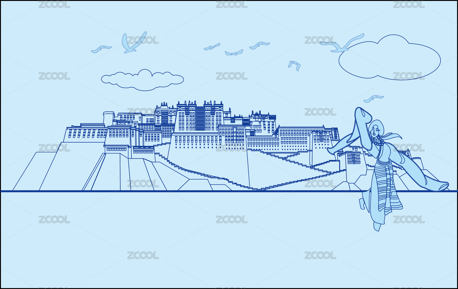 西藏布达拉宫插画设计