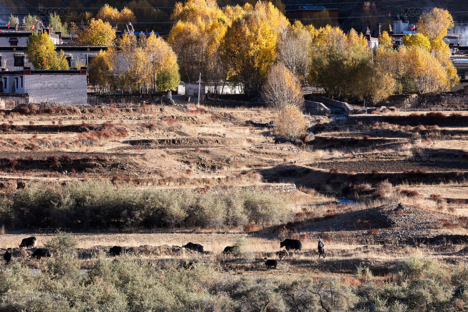 中国西藏日喀则市南木林县的秋色