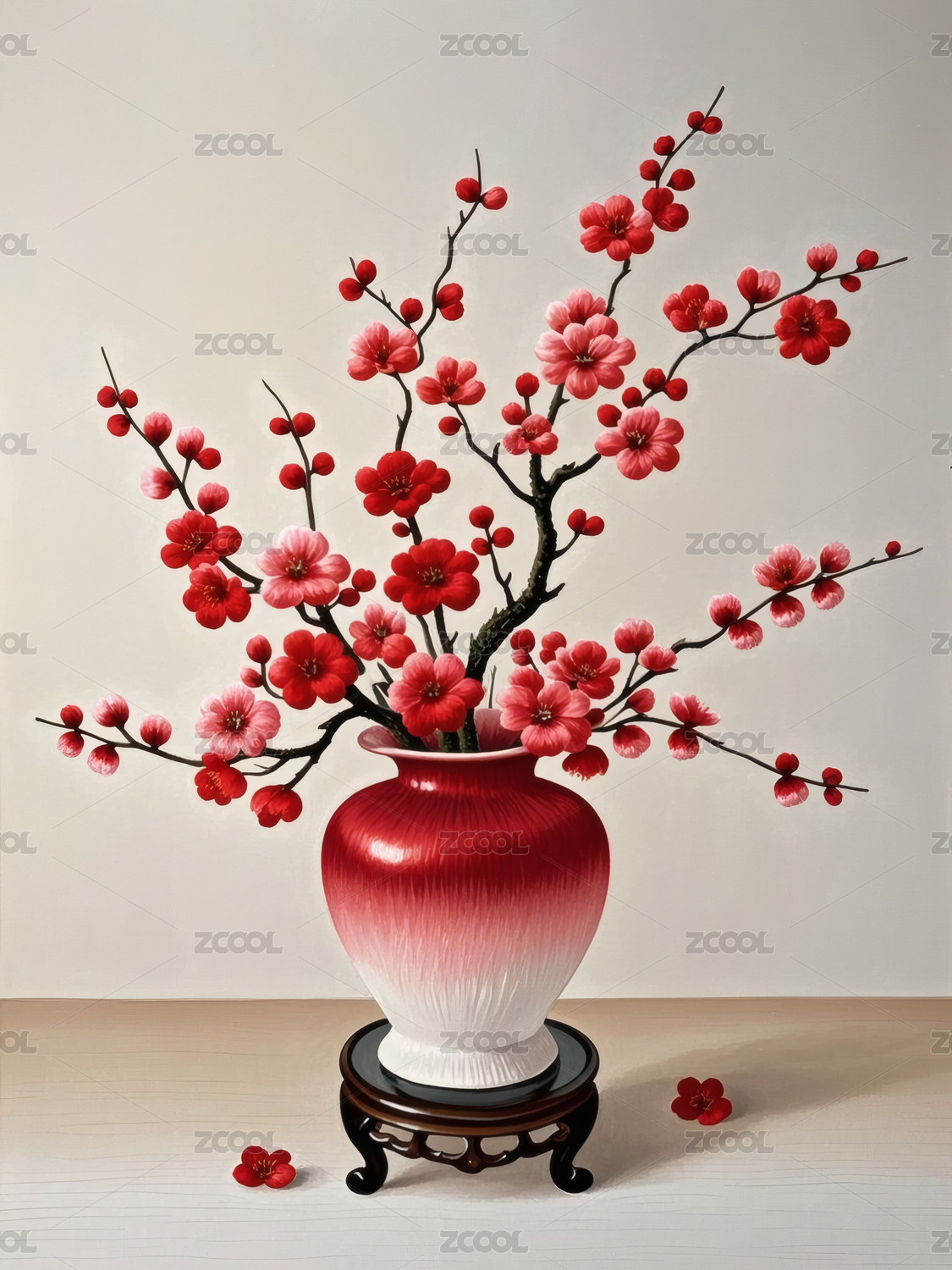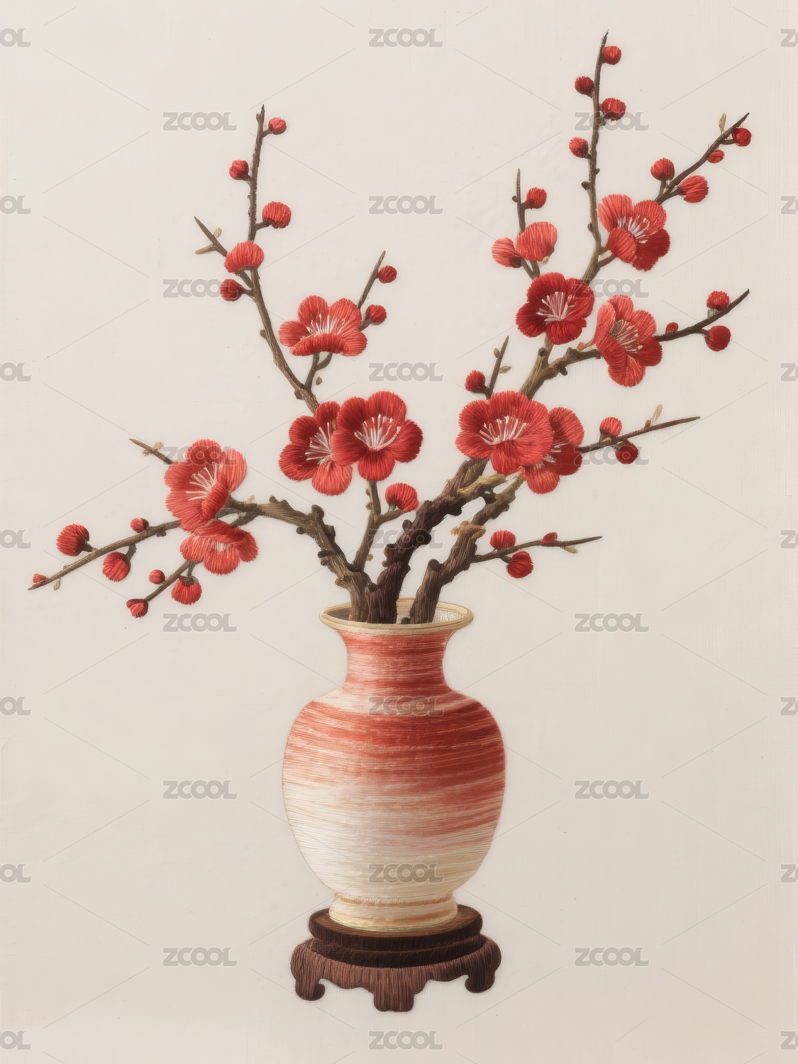 古风苏绣花瓶与红梅