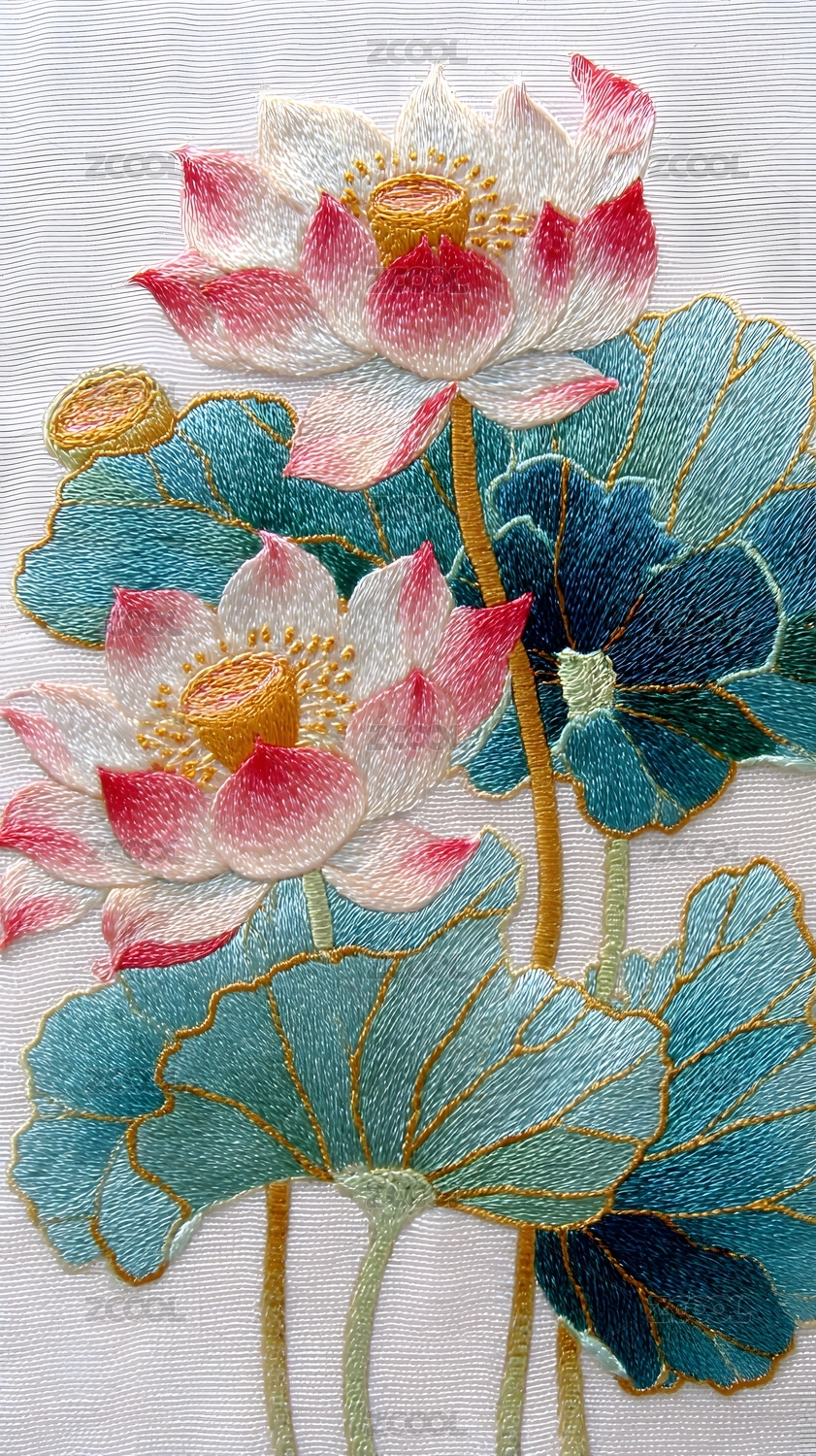 精美苏绣莲花绽放典雅意境