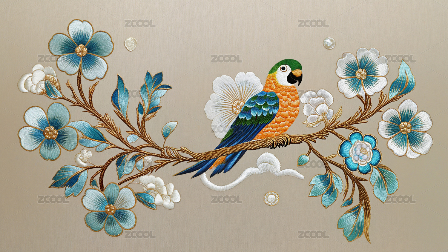 栩栩如生的苏绣鹦鹉
