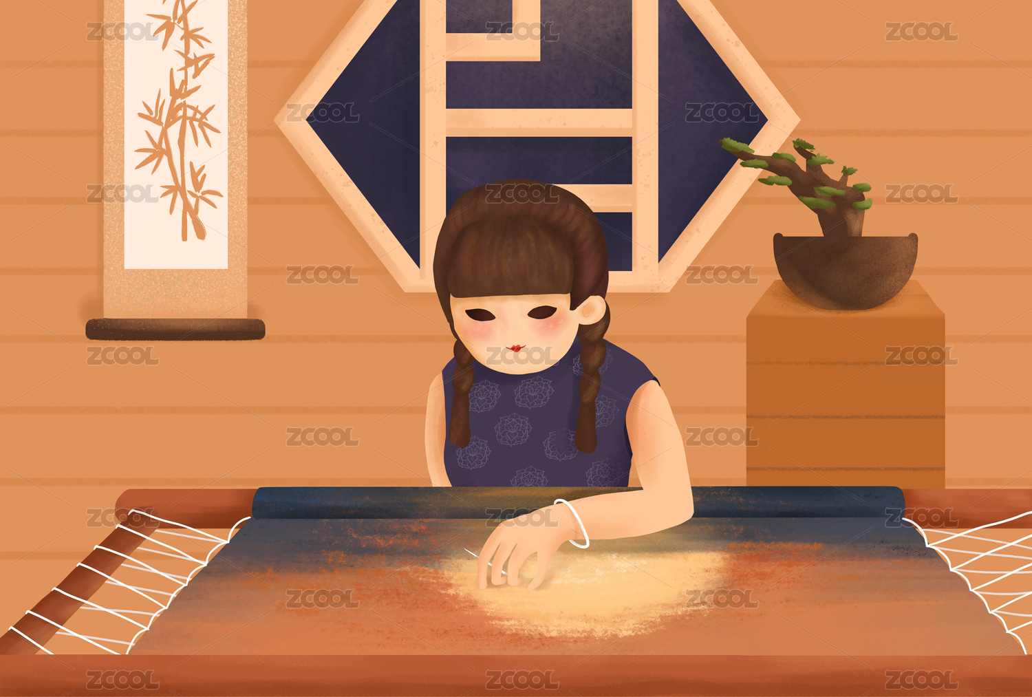 苏州绣娘刺绣插画