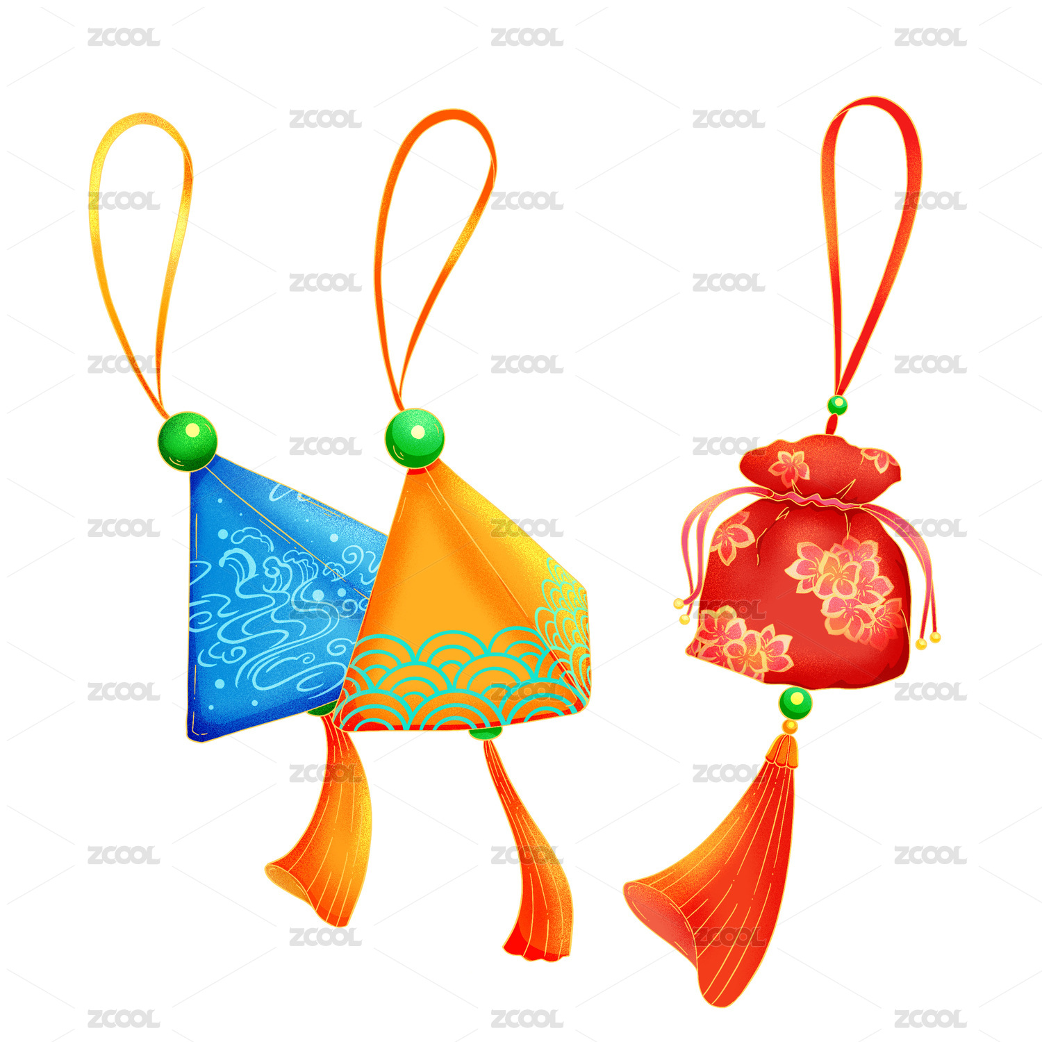 中国传统节日端午节五毒辟邪香包香囊国潮插画