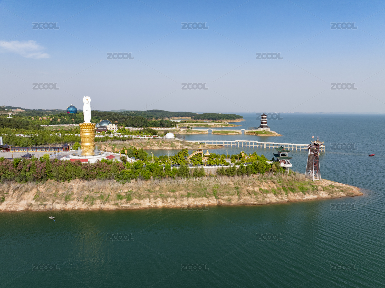 淅川县丹江大观苑三面观音塑像航拍图片