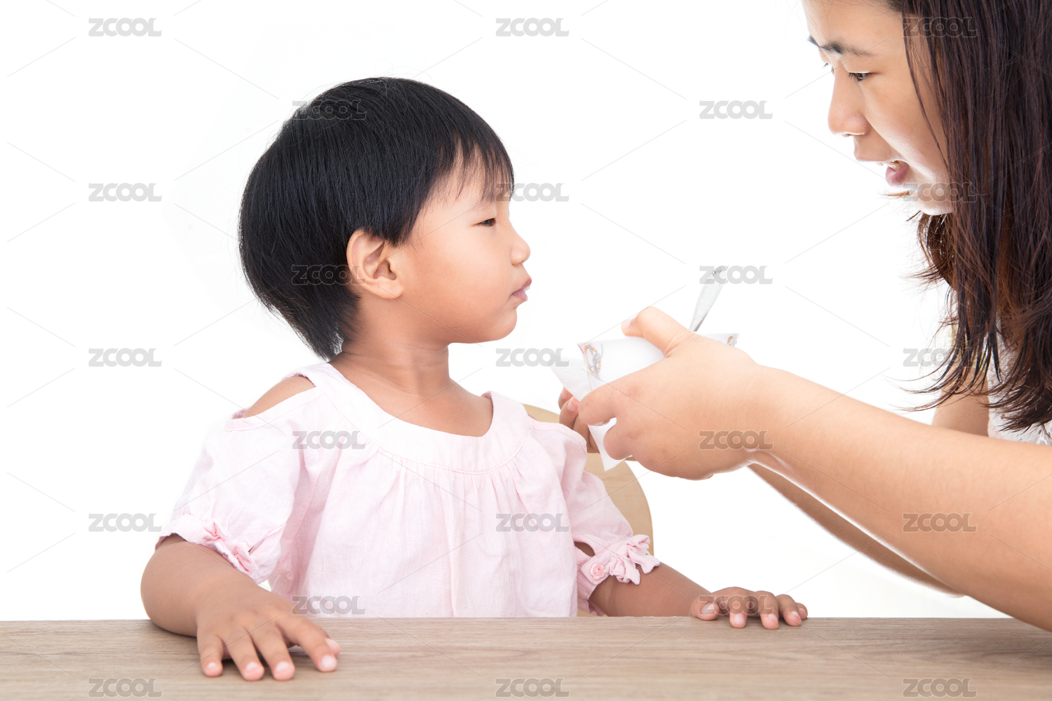 由于拒绝吃饭年轻妈妈在和女儿谈条件