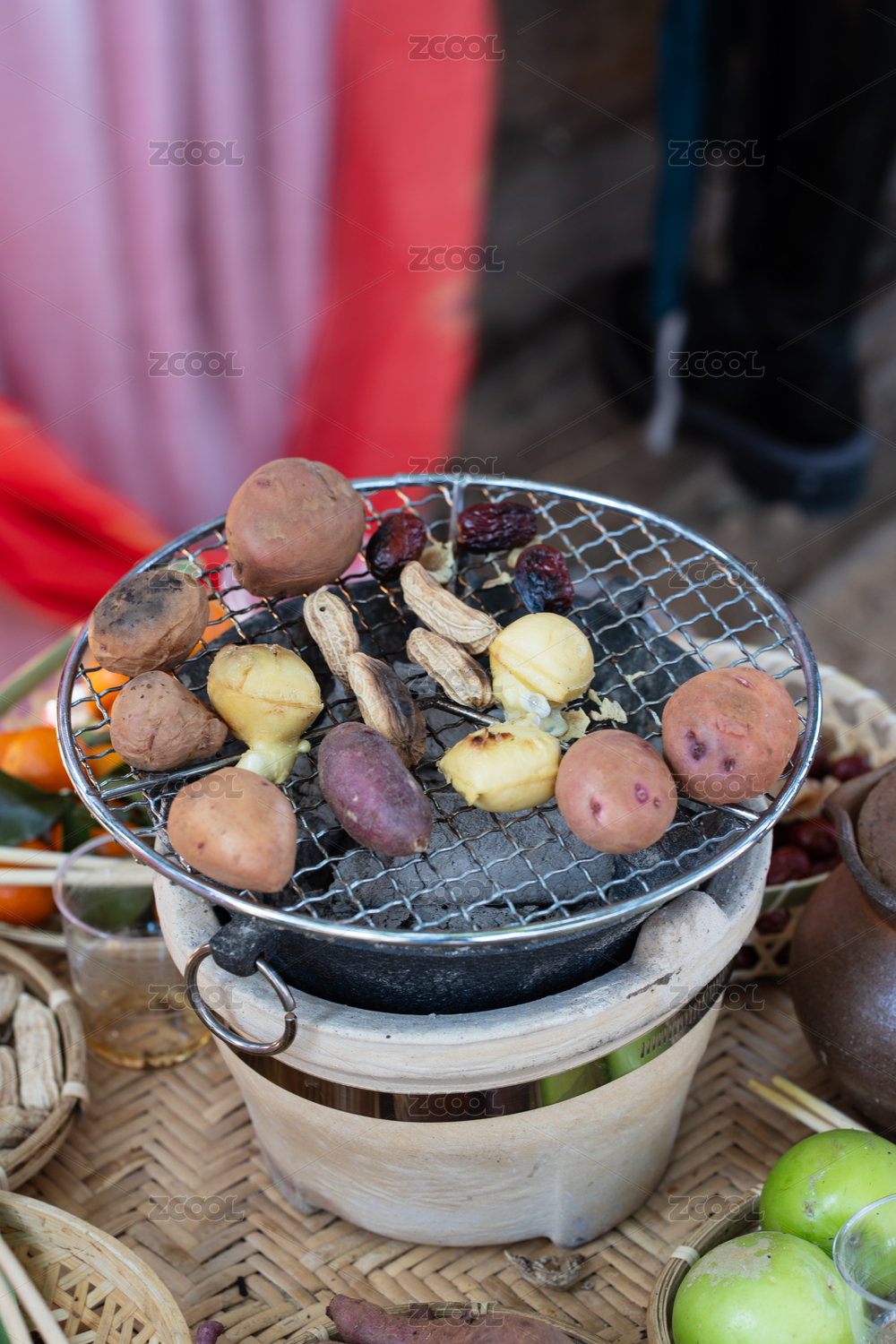 炭火上烤制的多样食材