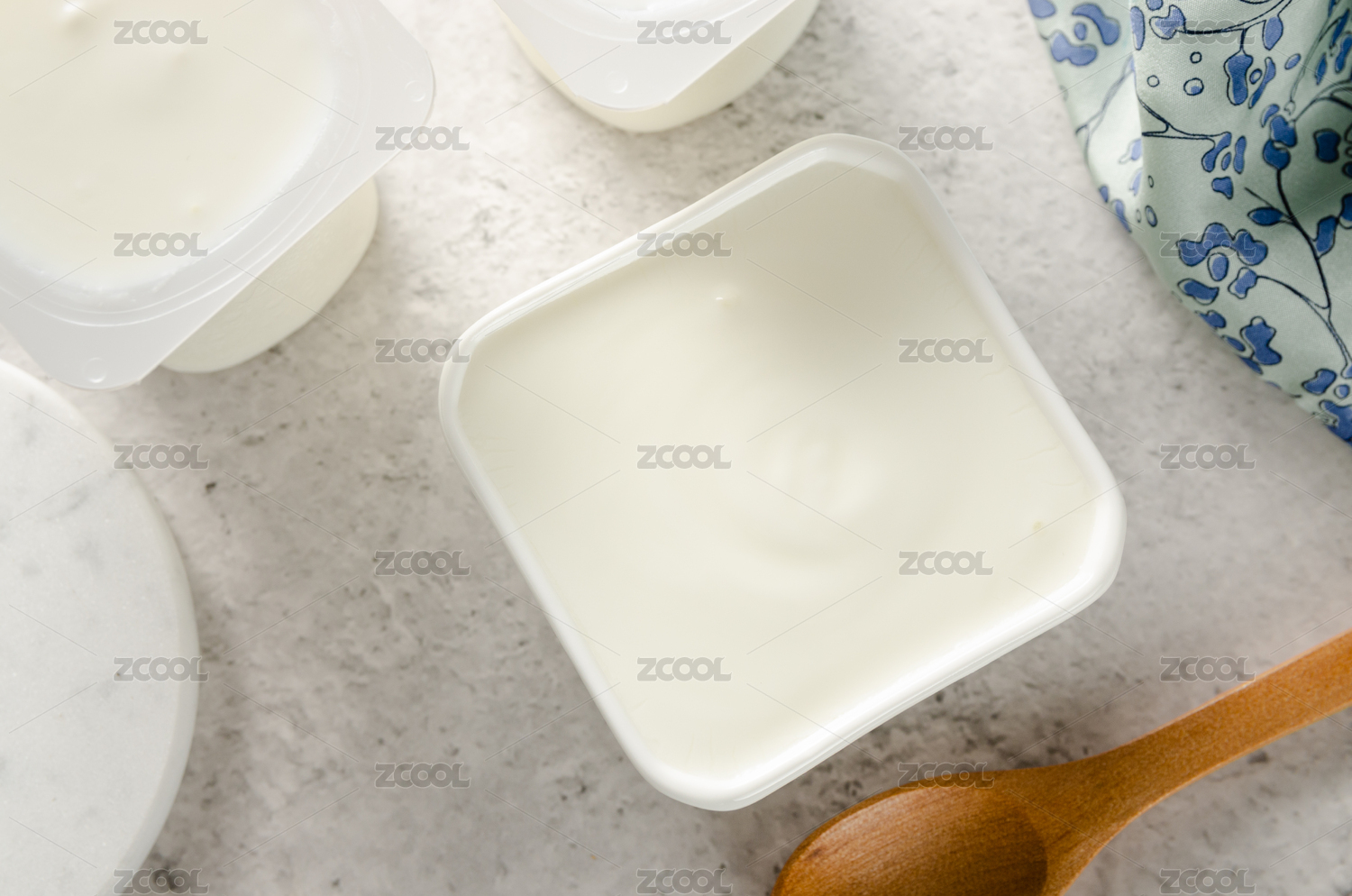 营养早餐发酵乳酸奶盛在四方陶瓷碗里