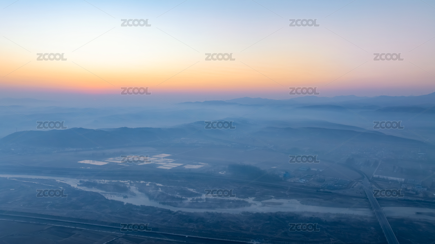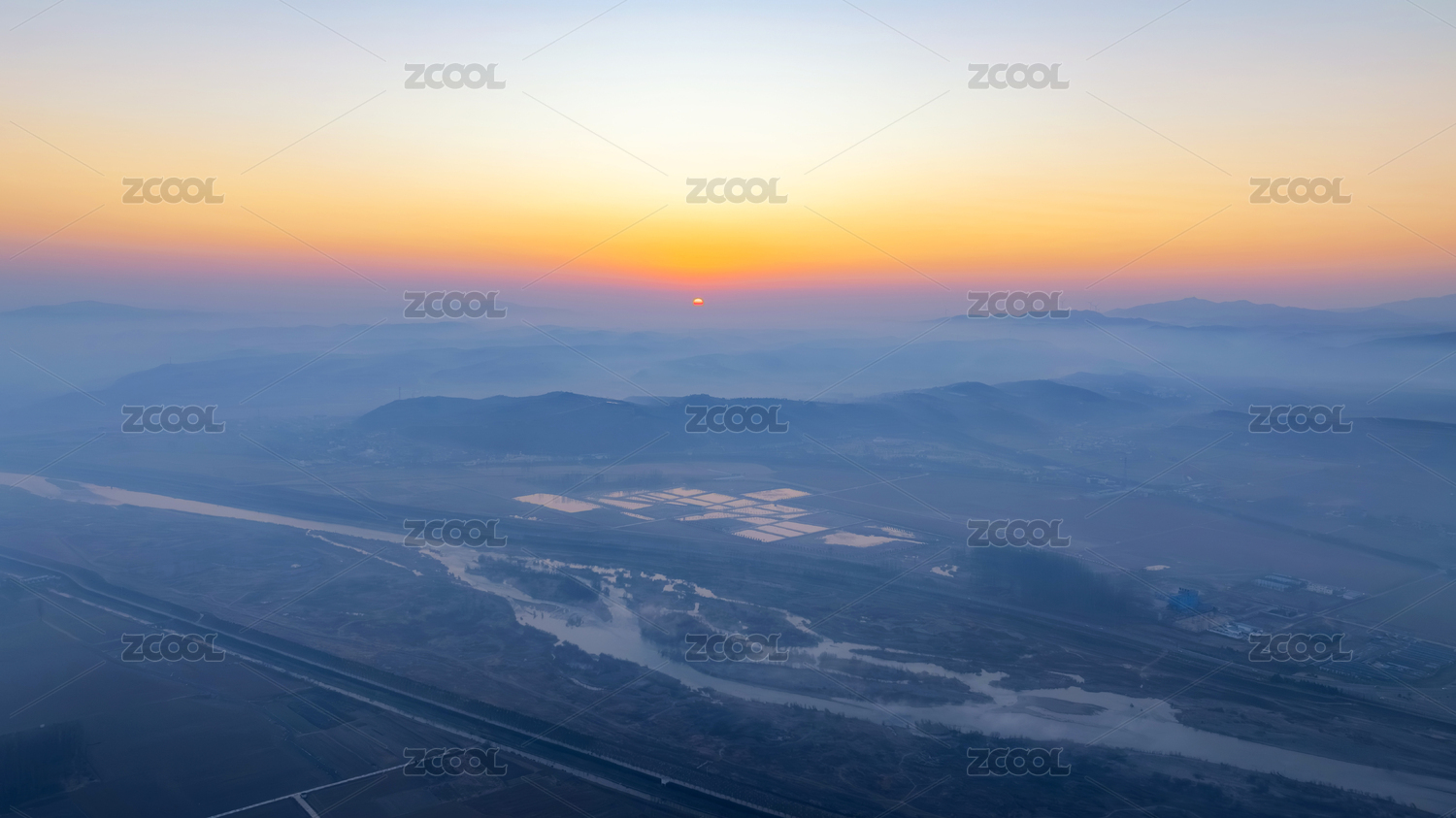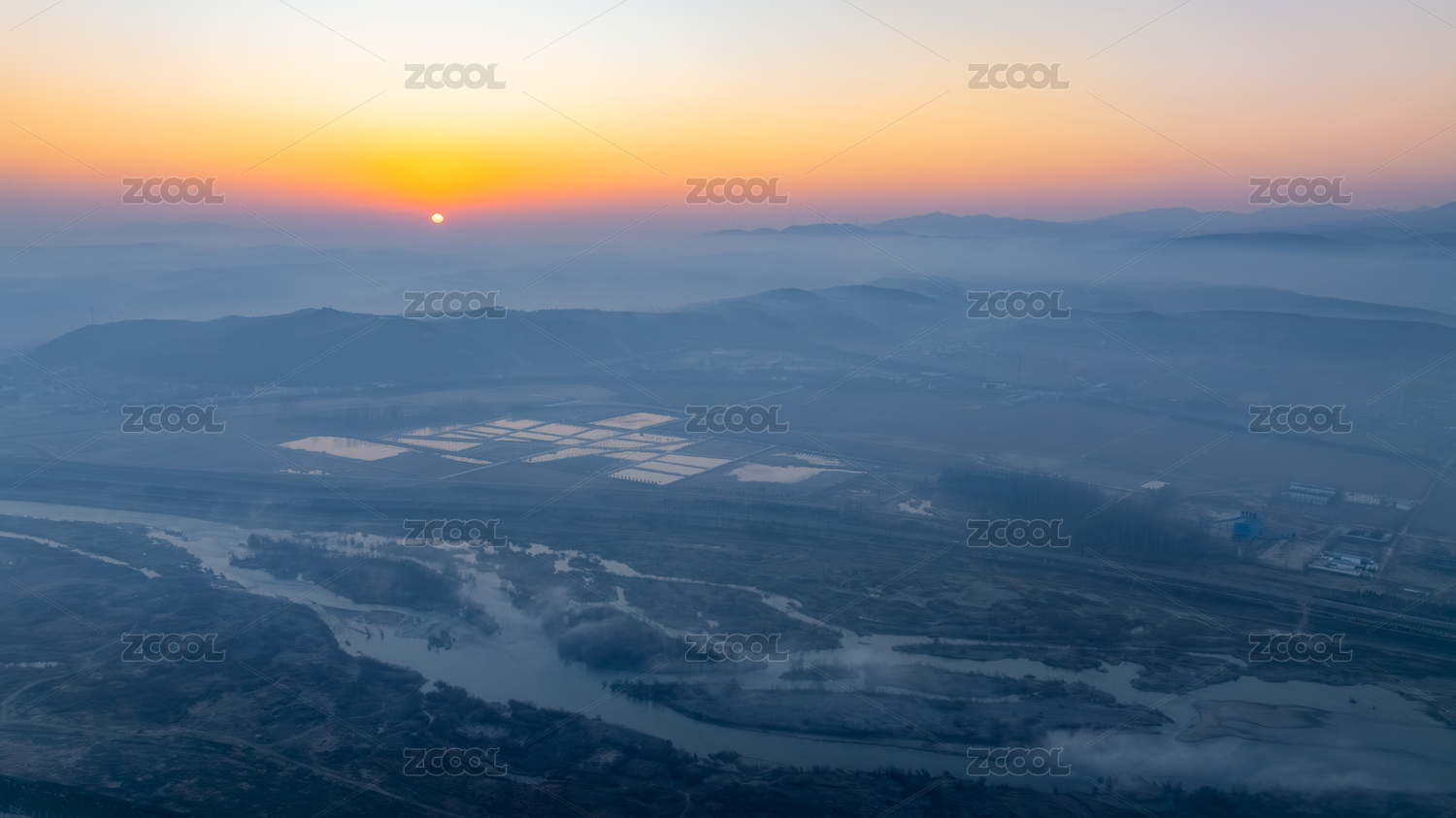 山川河流清晨薄雾日出航拍
