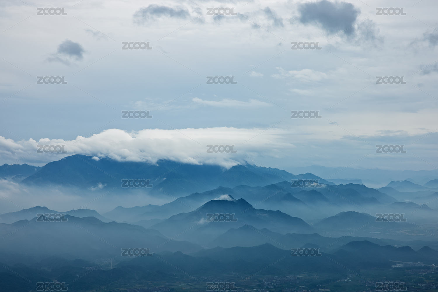 台州安基山眺望括苍山水墨山川云雾