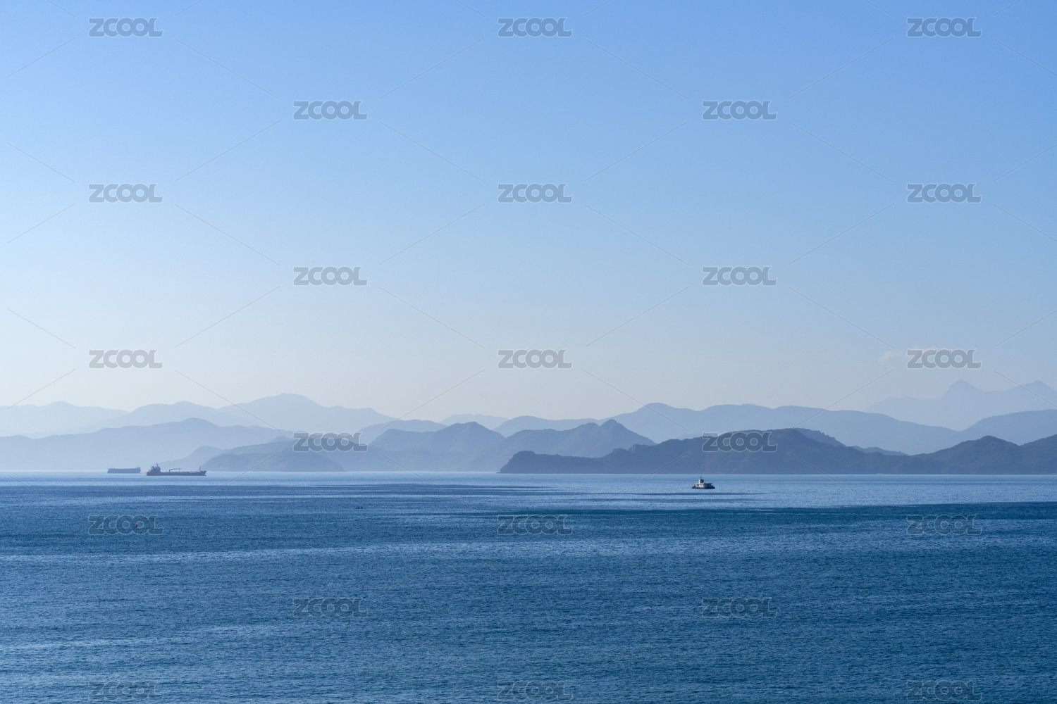 平静的海平面和蜿蜒起伏的山川