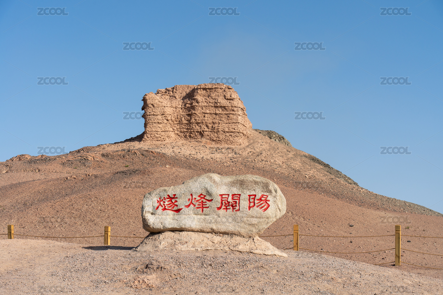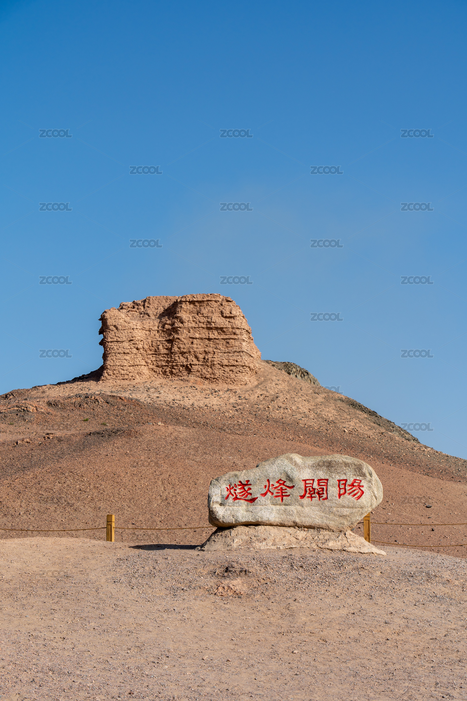 戈壁滩上的阳关故址石碑