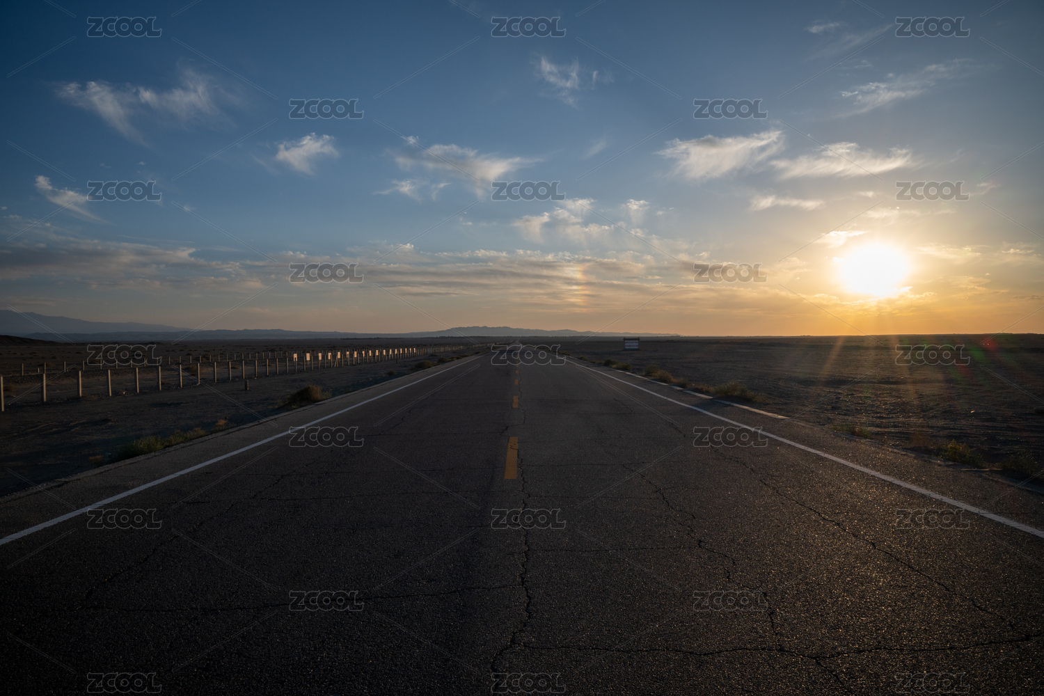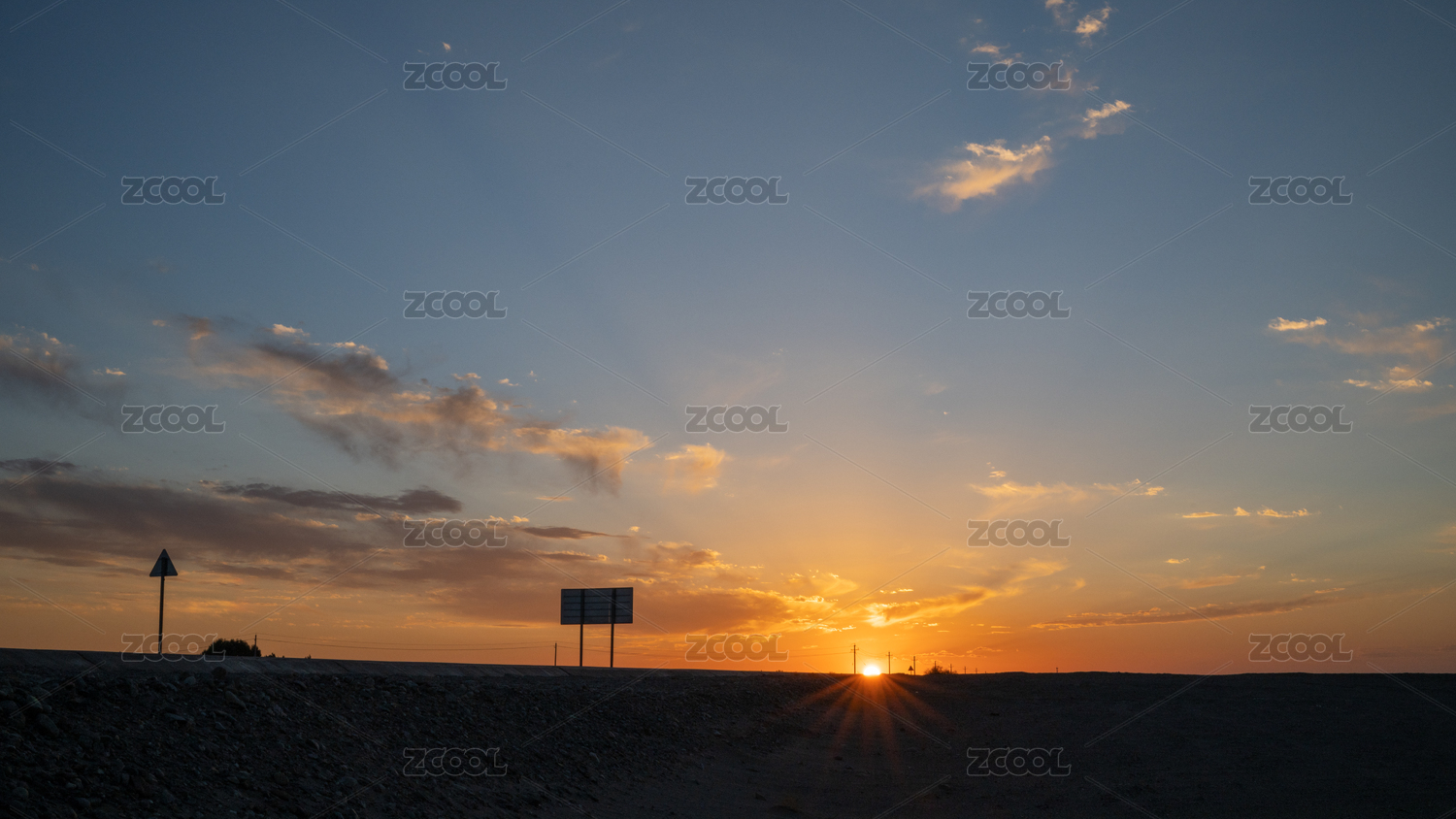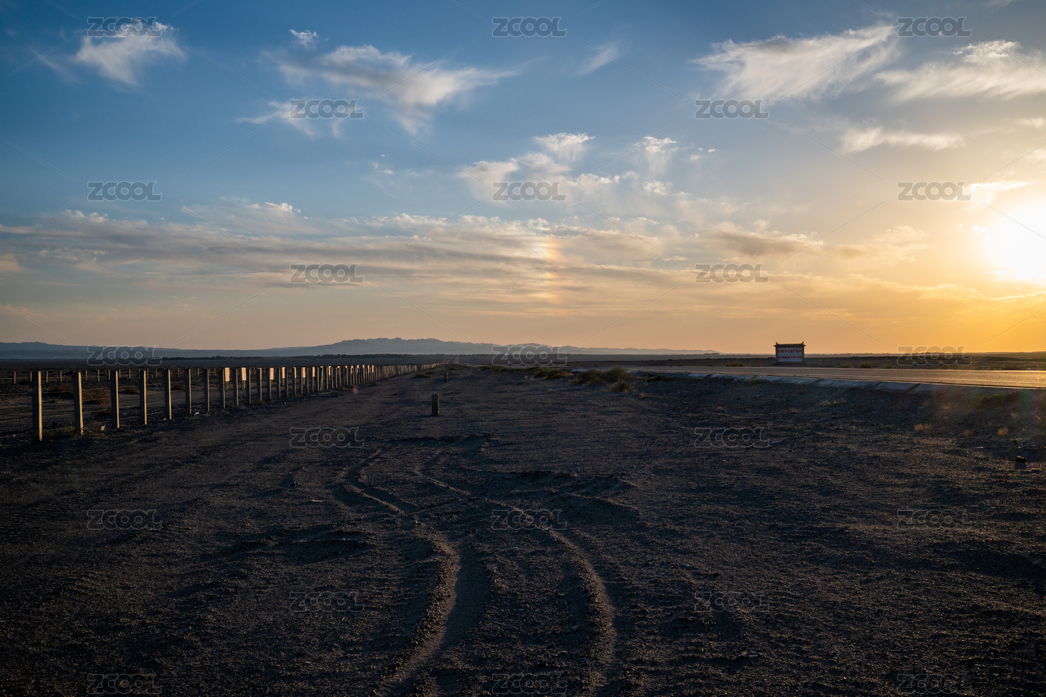 中国甘肃敦煌市阳关日落时的戈壁滩