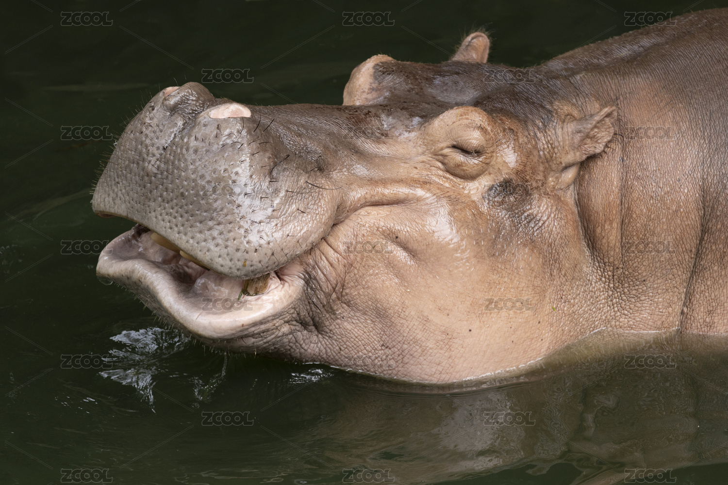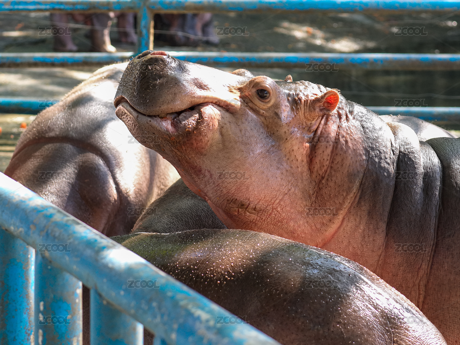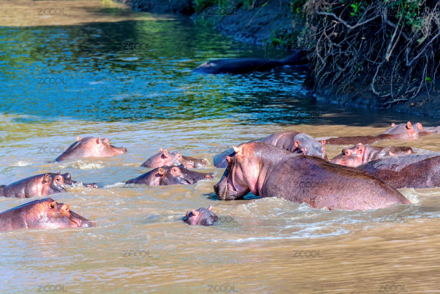 在非洲肯尼亚湖泊里的一群河马围在一起