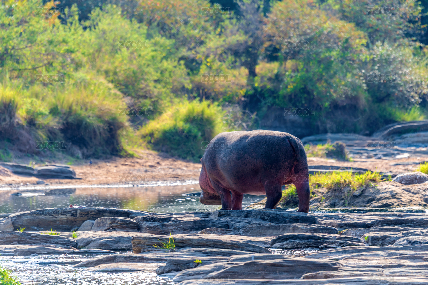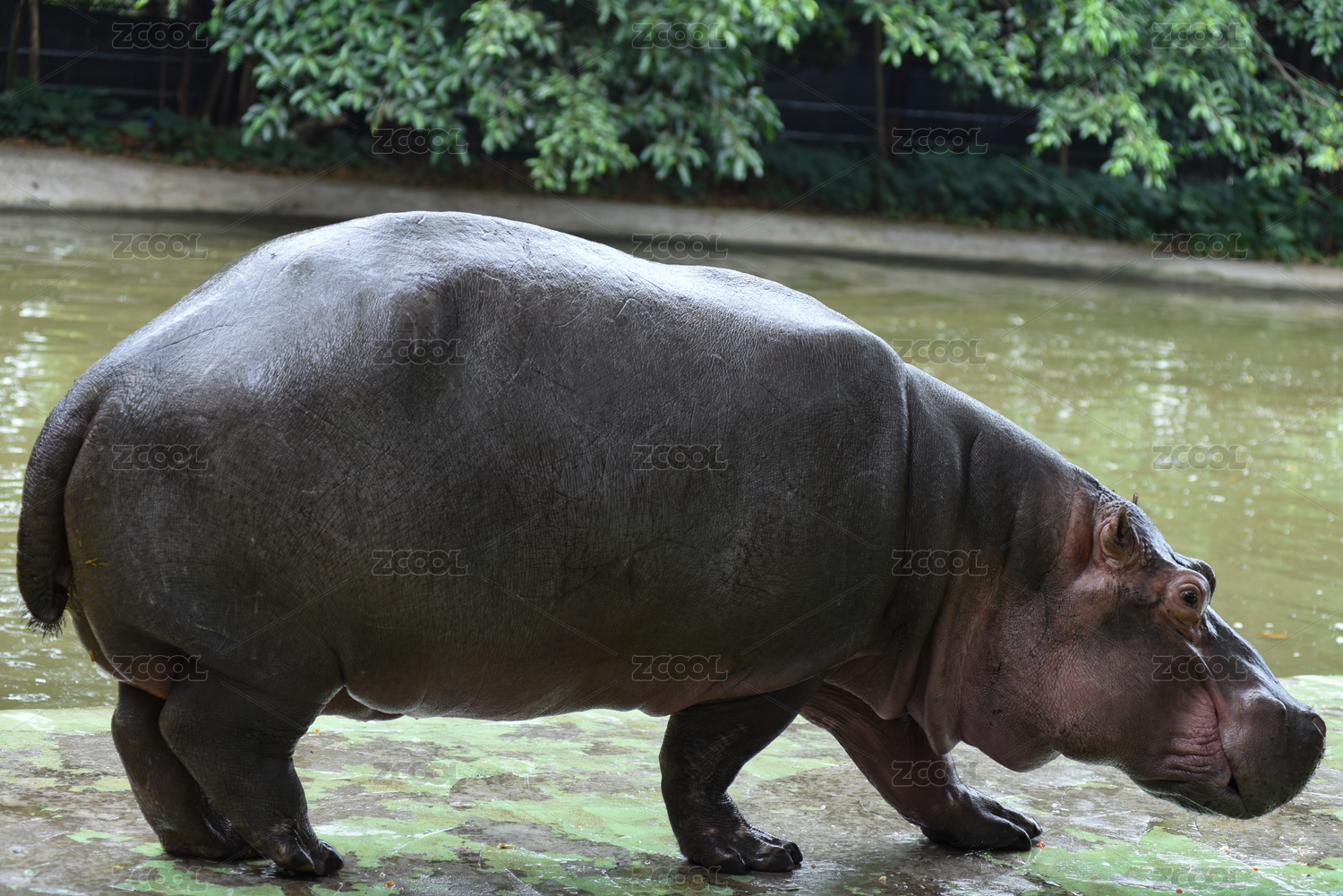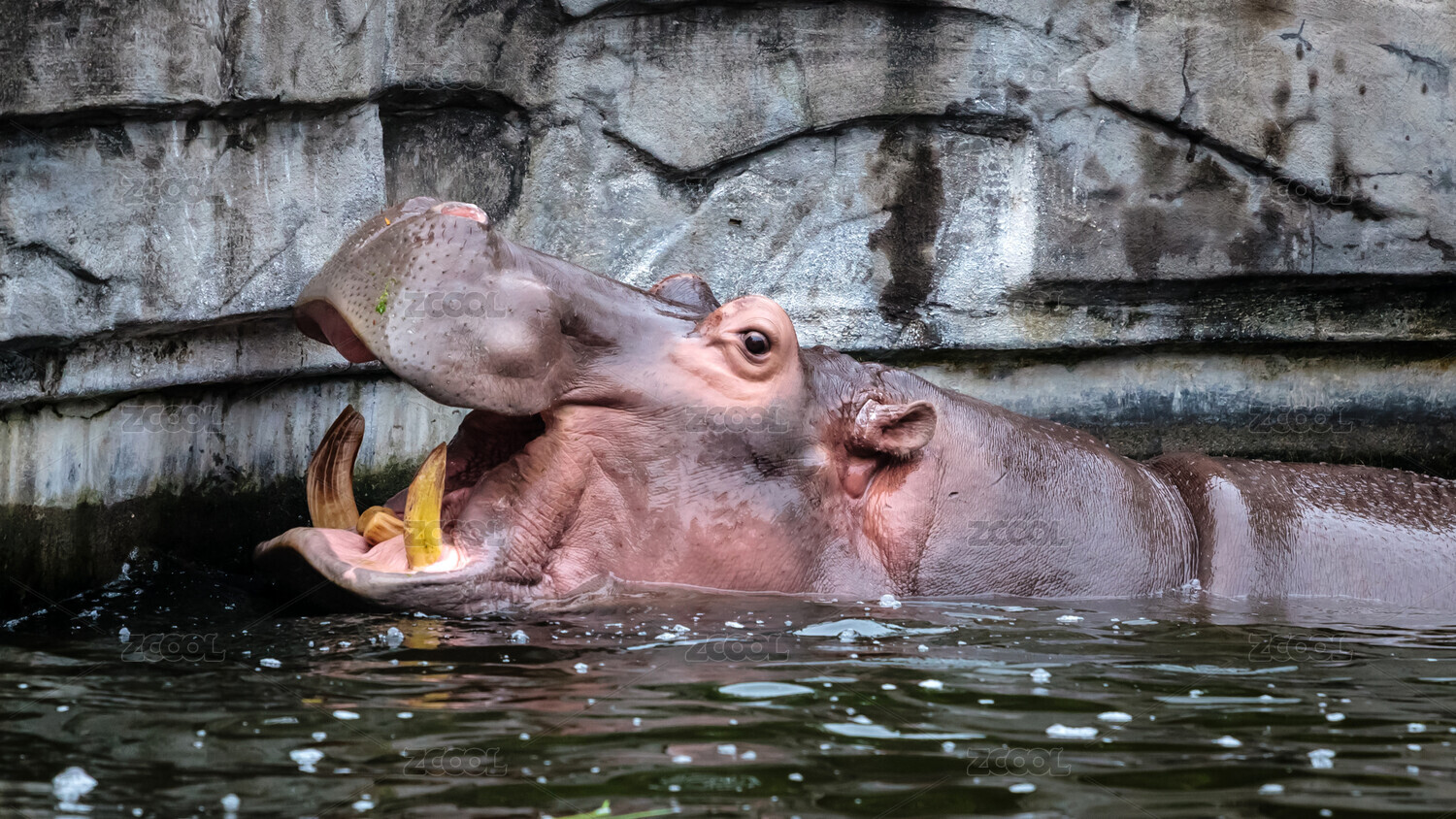 在非洲肯尼亚湖泊里的一群河马围在一起