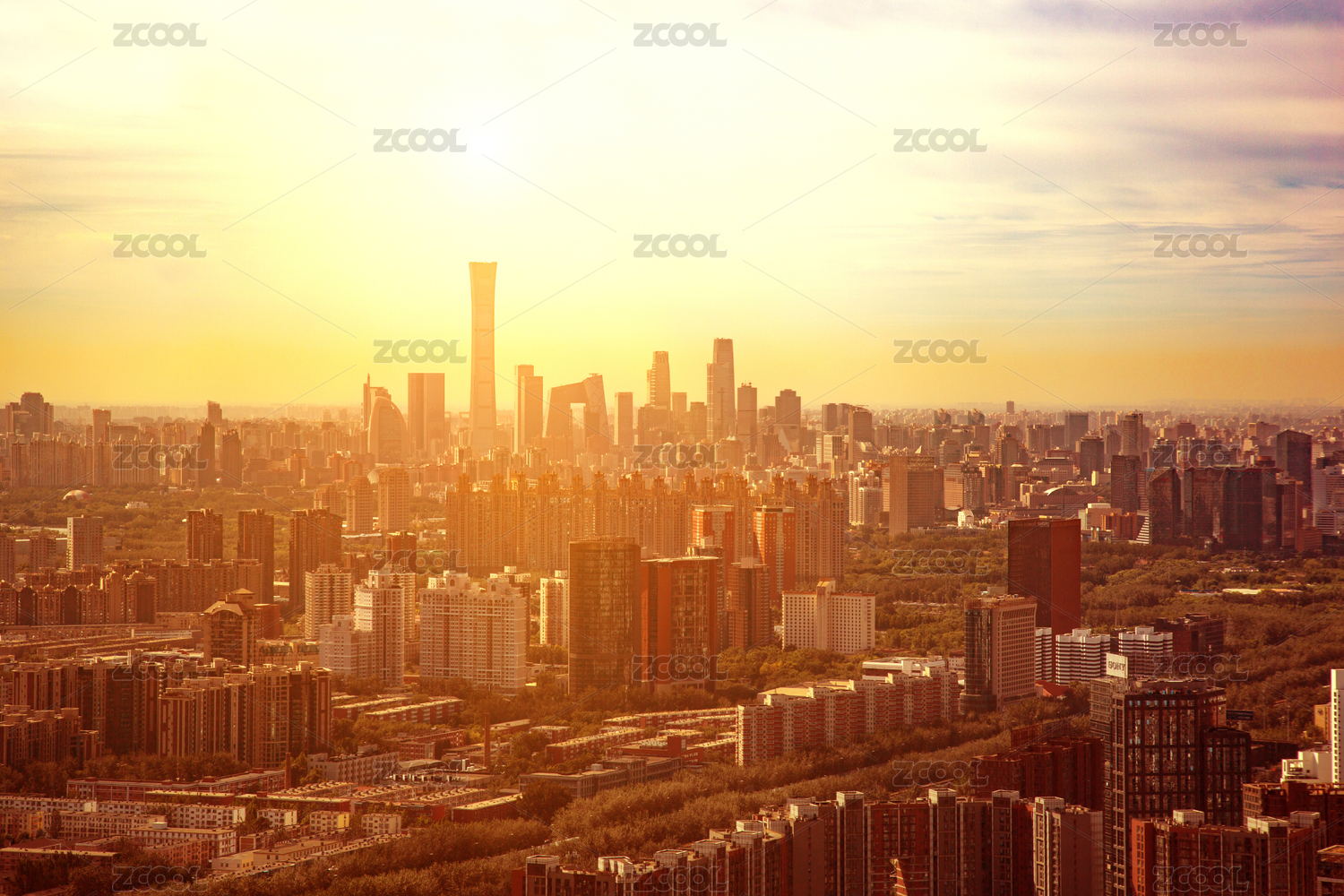 中国北京望京CBD远景落日风光