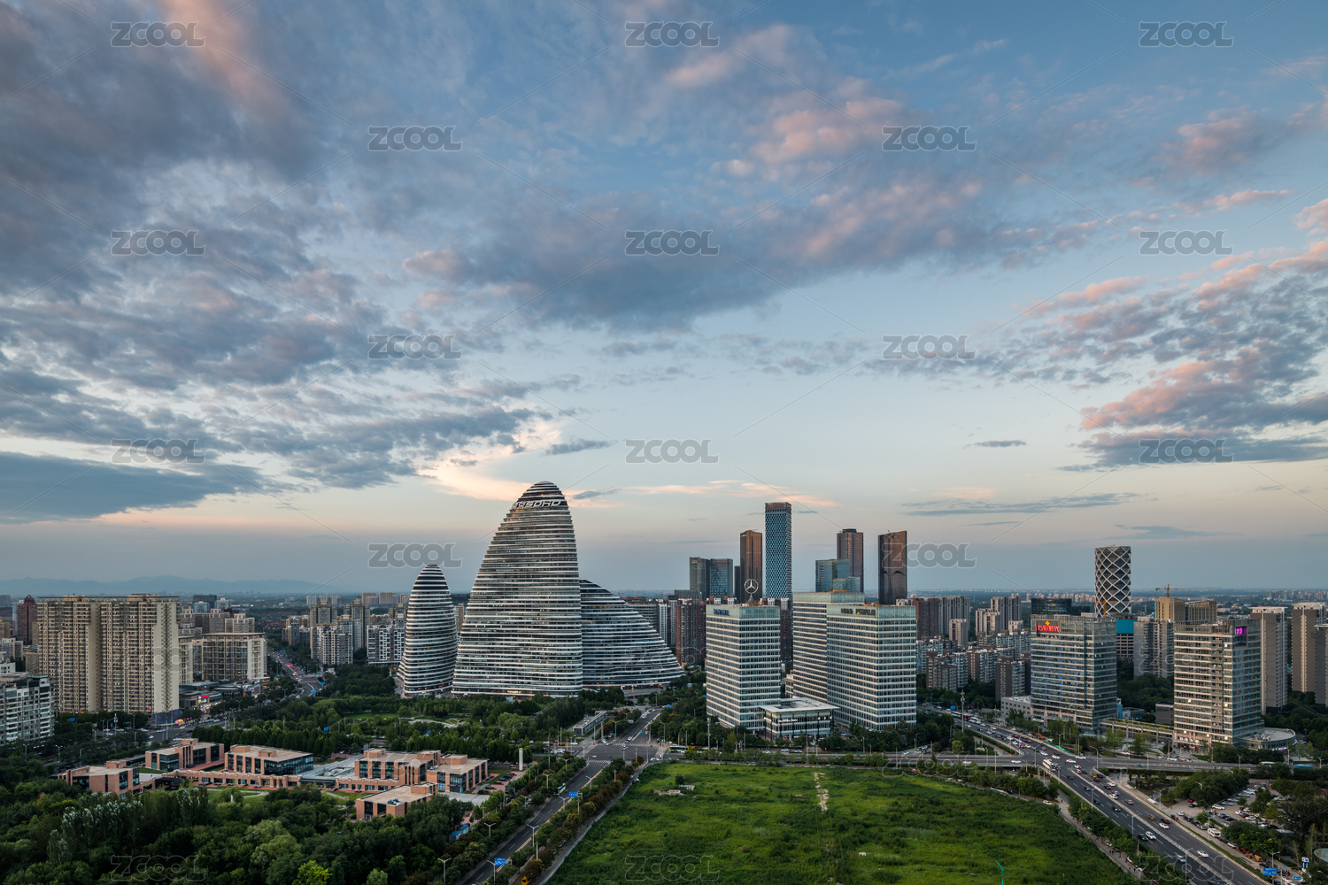 中国北京望京CBD晚霞