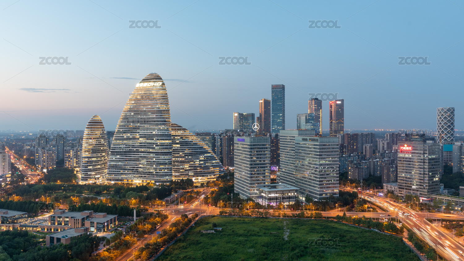 北京望京SOHO夜景灯光车流