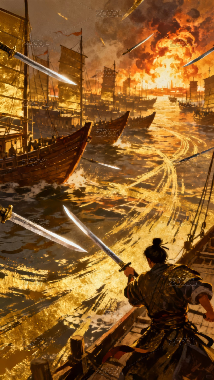 中国湖北三国赤壁古战场仿古建筑航拍图