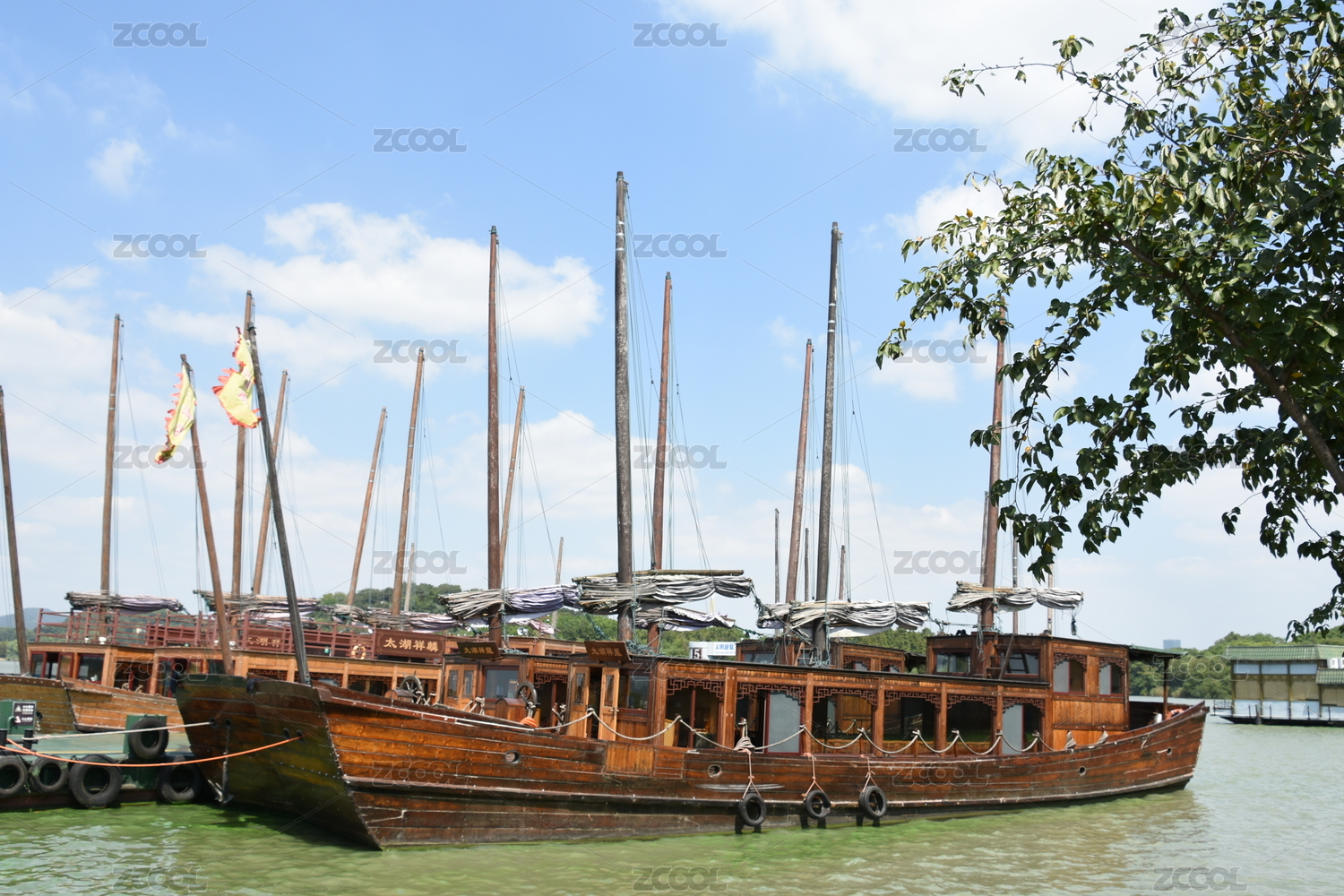 中国浙江省嘉兴市桐乡市乌镇停靠在码头的船只
