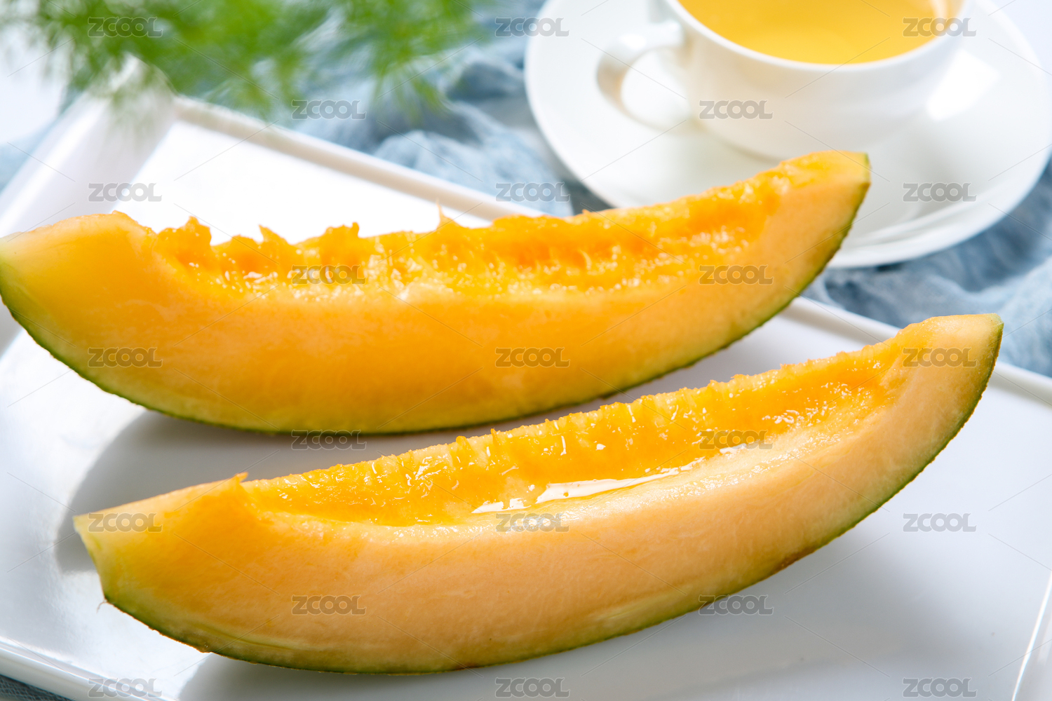 白色桌面上放着哈密瓜