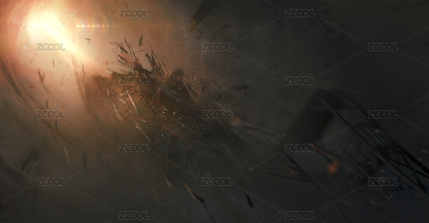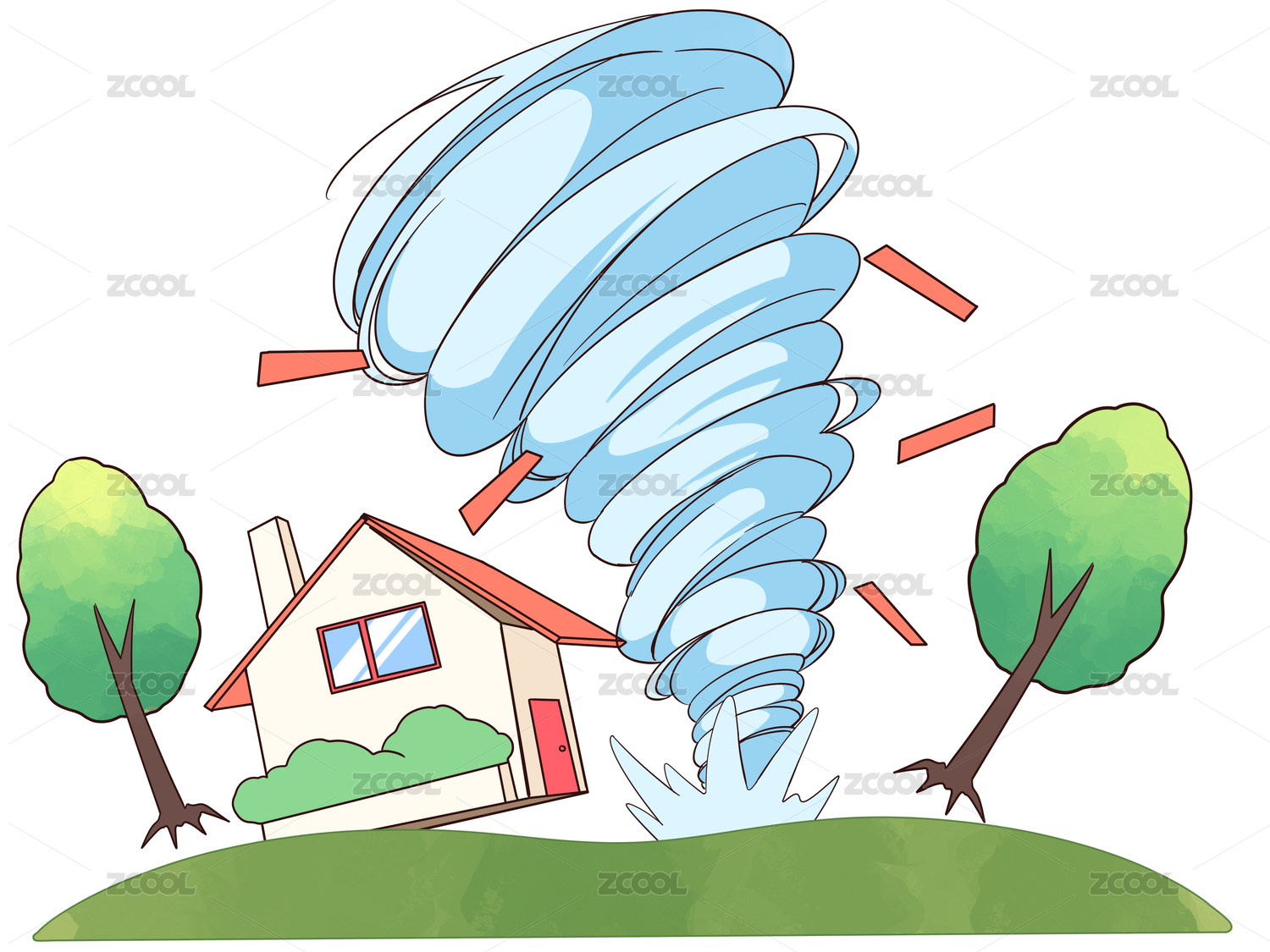 被卷进龙卷风里的房子和杂物,数码绘画。