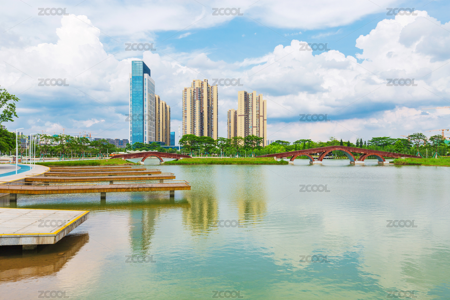 中国广西柳州江滨摩天大楼与沿江亲水平台