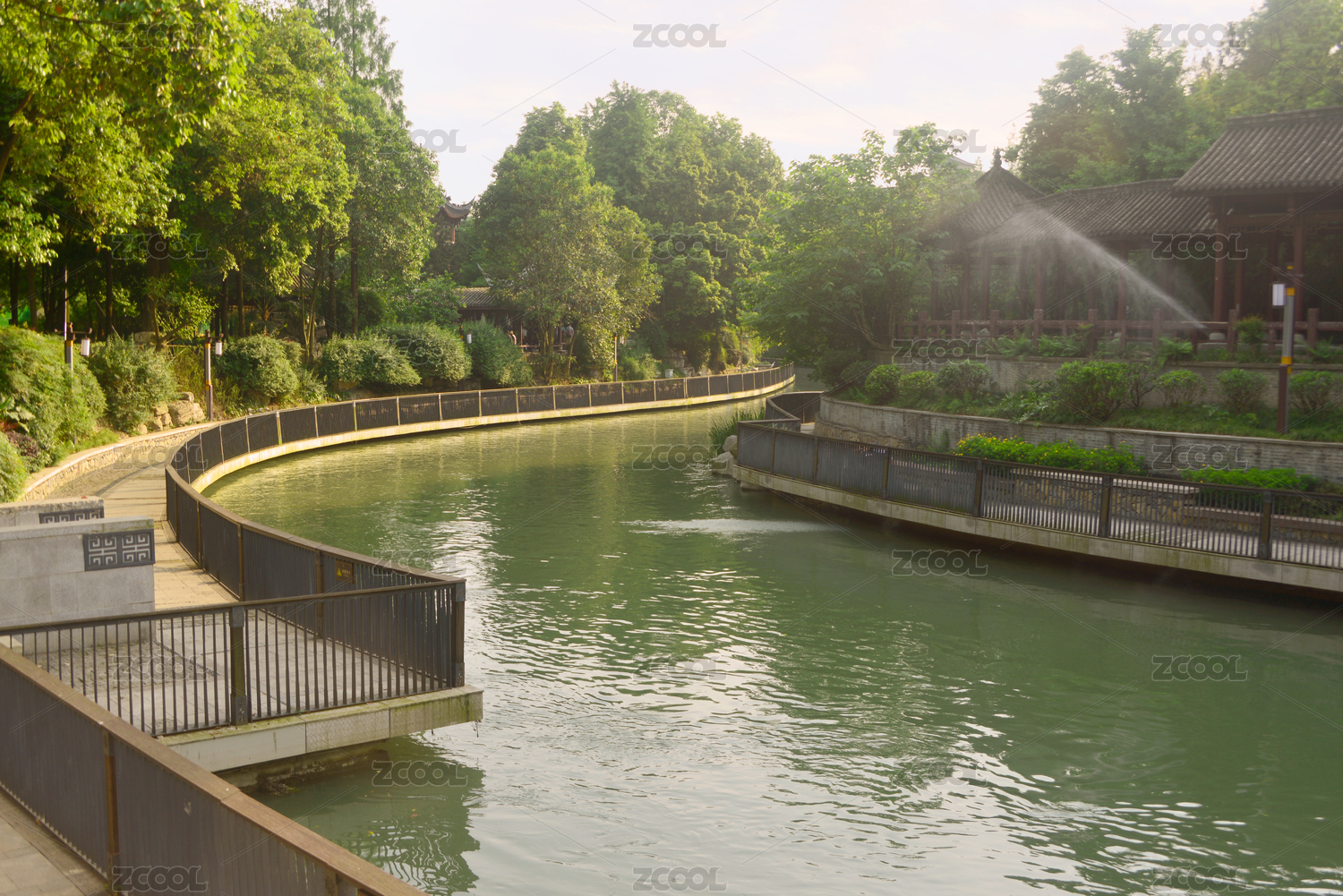 成都浣花溪河畔城市园林 步行道及亲水平台