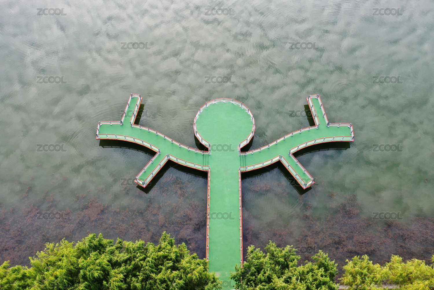 上海黄浦江畔浦东滨江公园的亲水平台建筑
