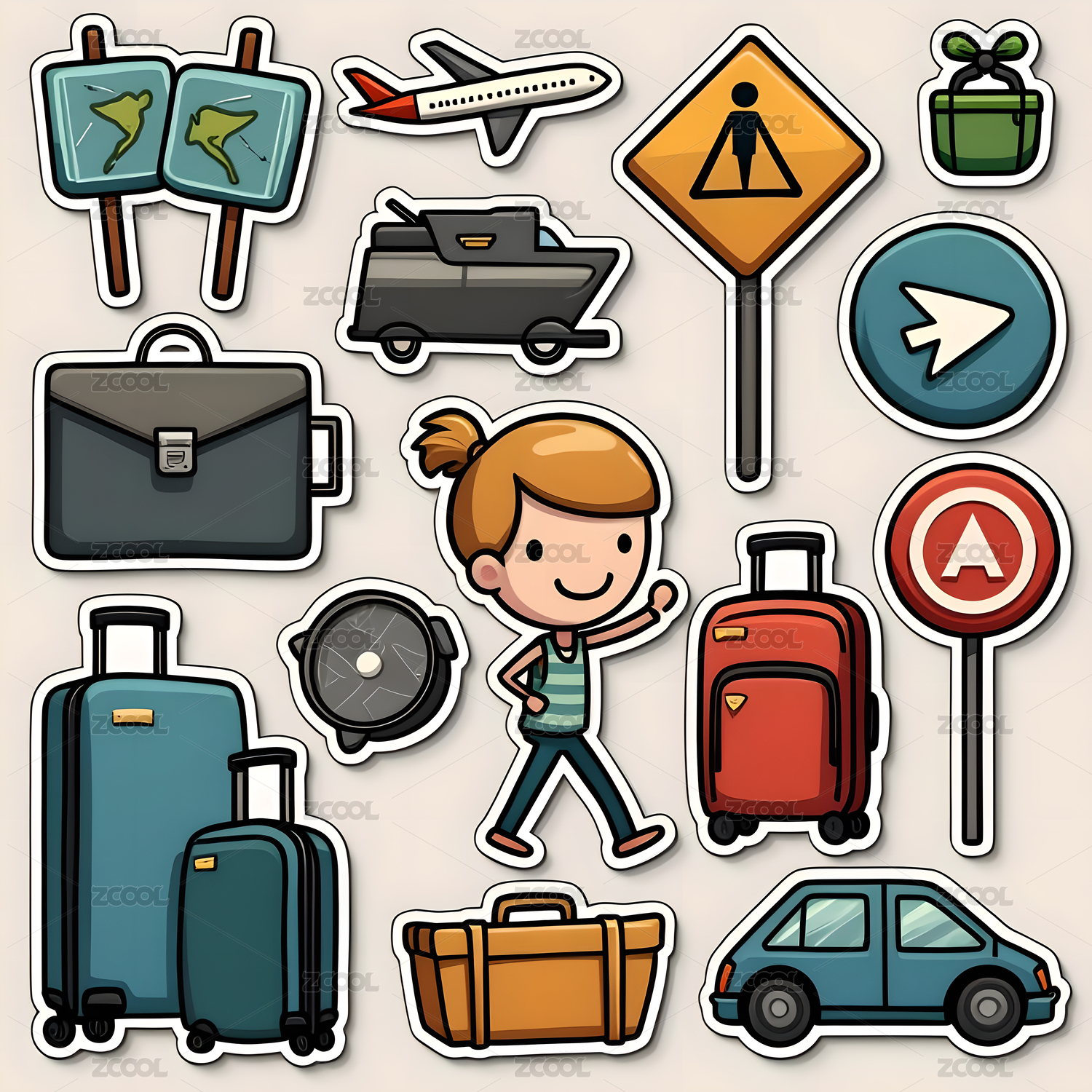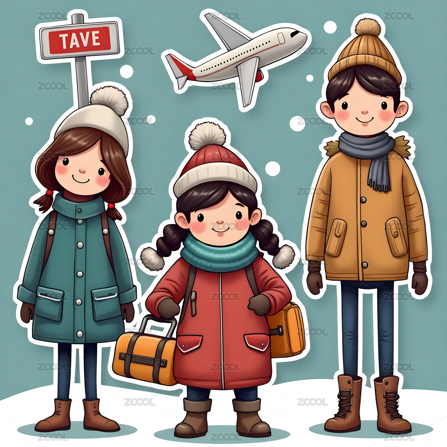 冬季出行旅行平面贴纸