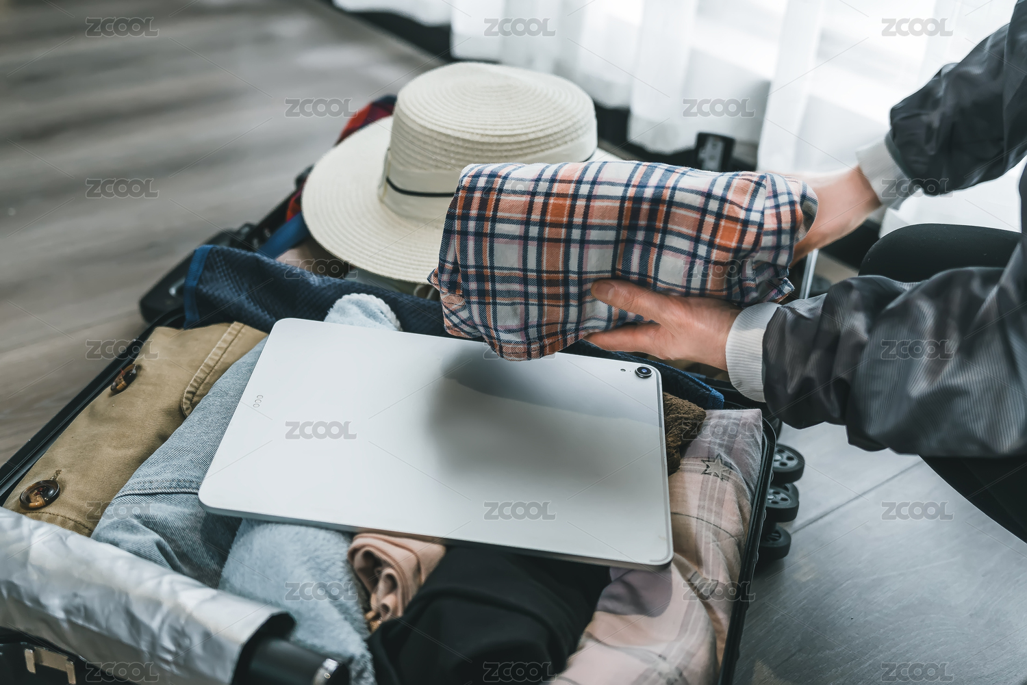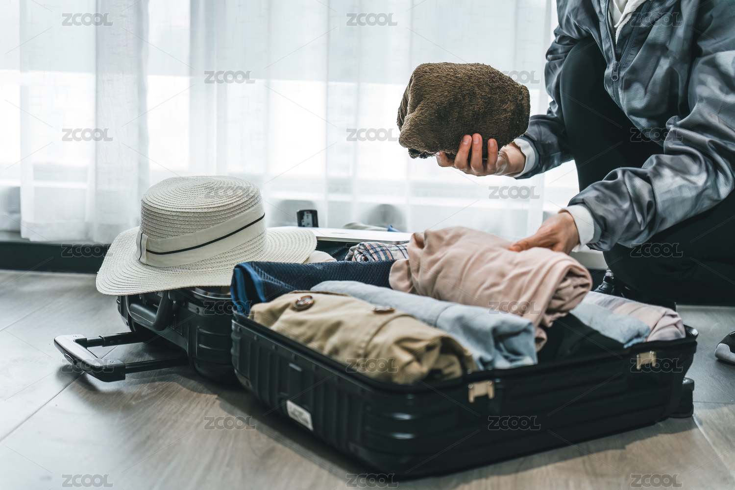 女性整理手提箱实现高效旅行包装