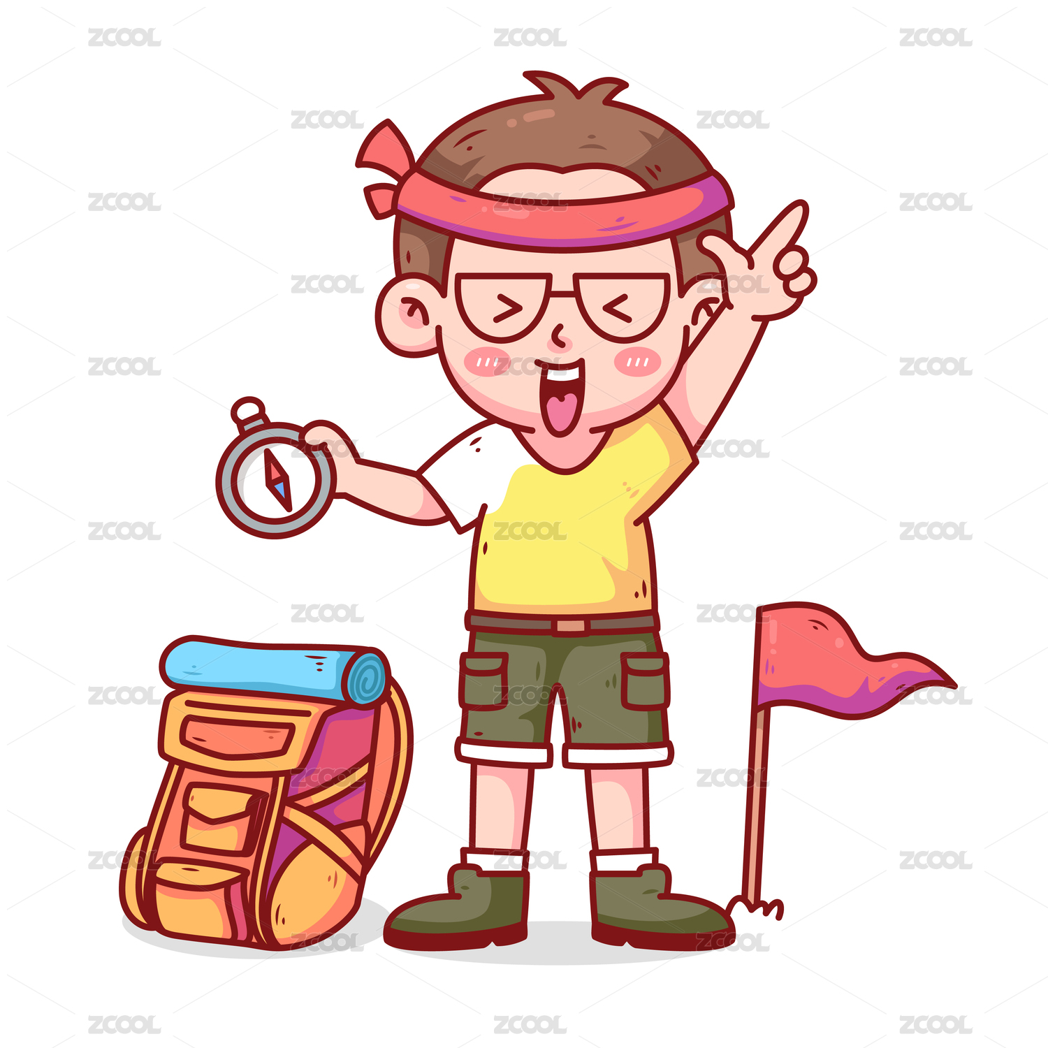 小男孩拿着指南针矢量插画
