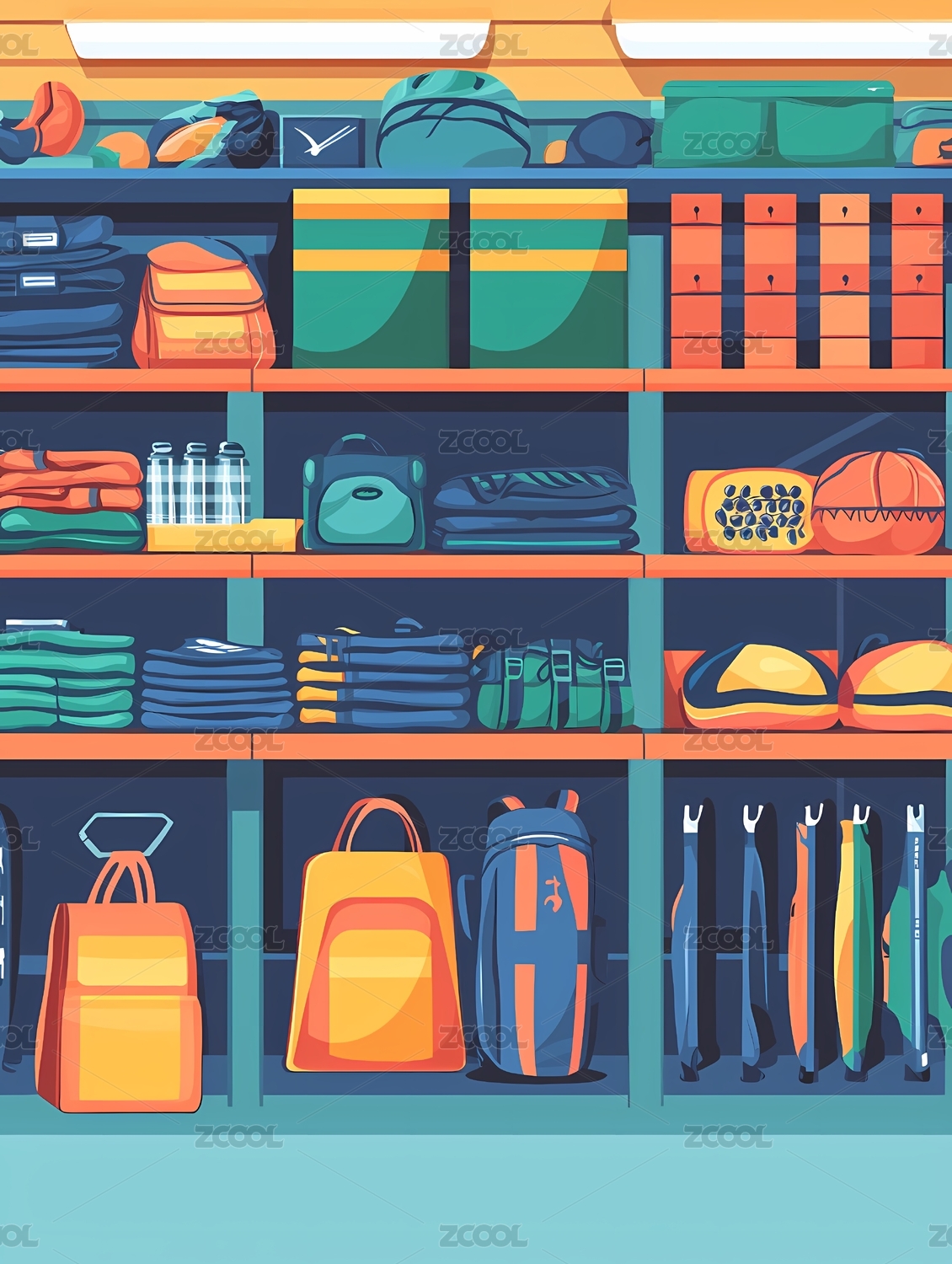 户外装备商店货架陈列