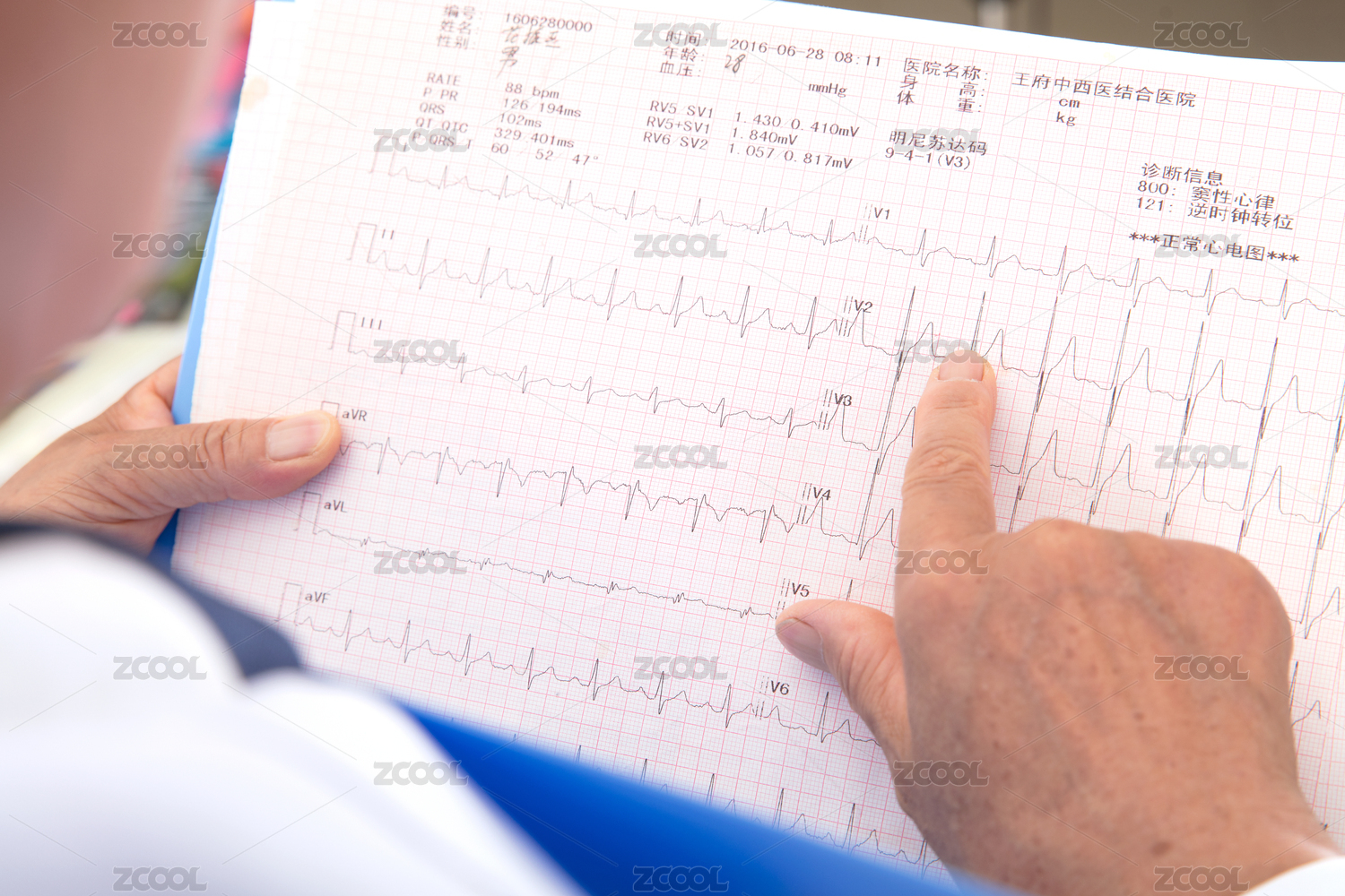 手拿着血糖仪测量血糖,背景是听诊器和病历夹