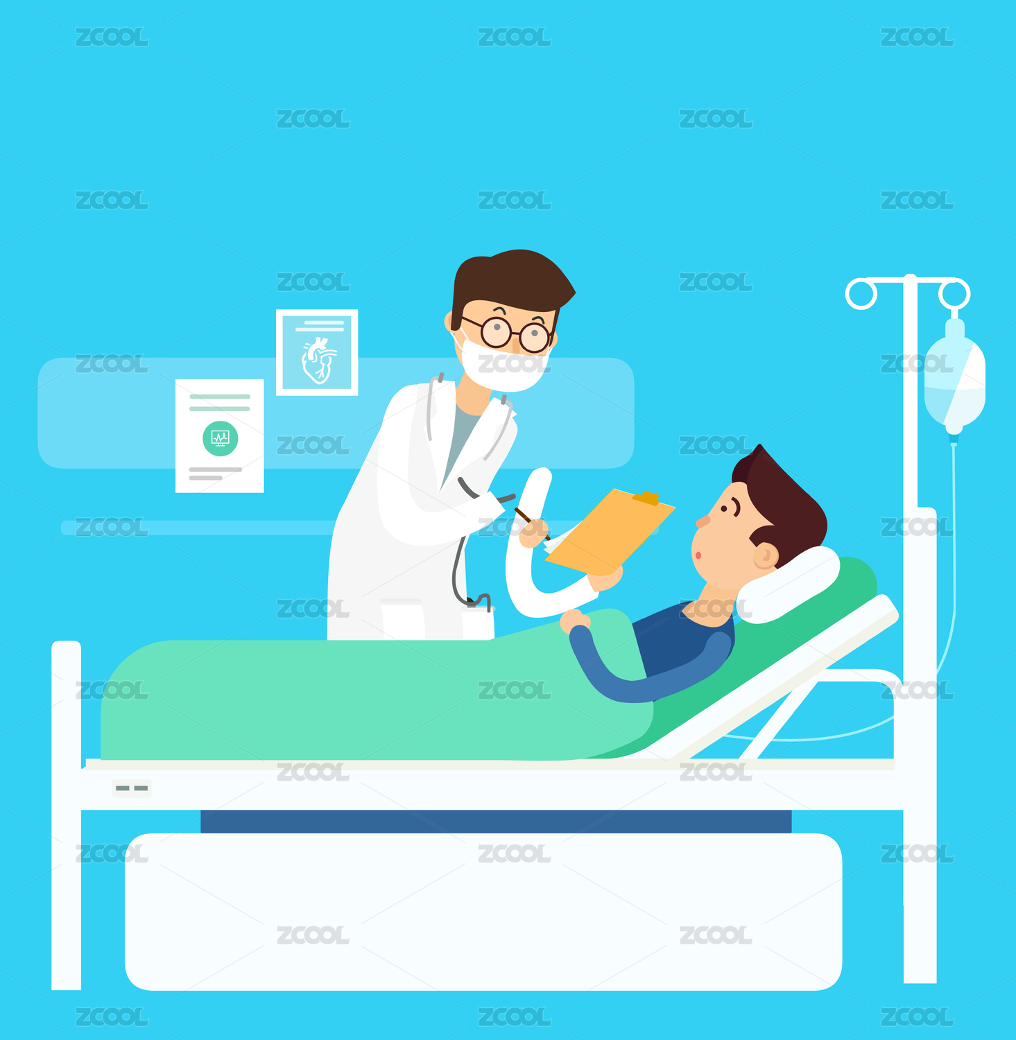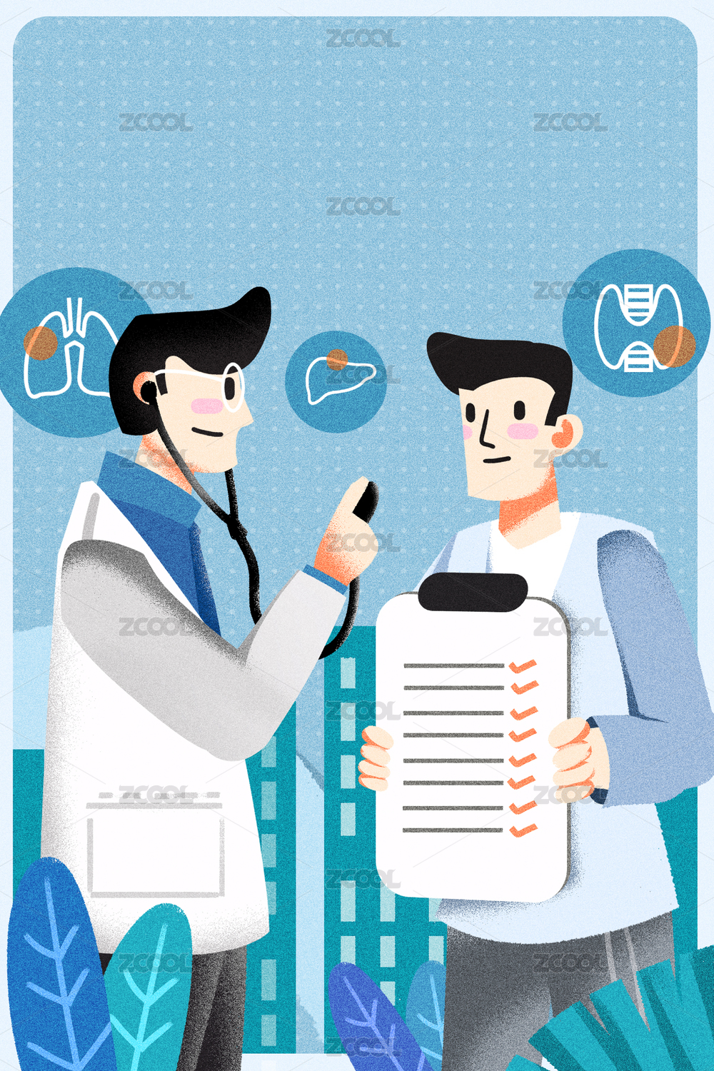 一位穿着白大褂手拿病历本的青年男医生 手绘插画
