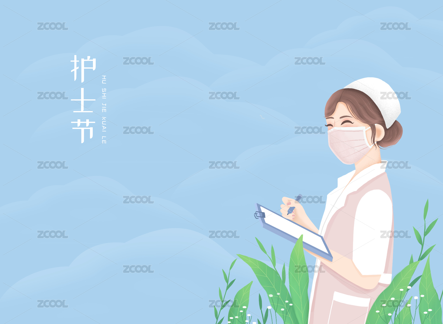 白背景里穿蓝色护士服手持病历夹的美女护士