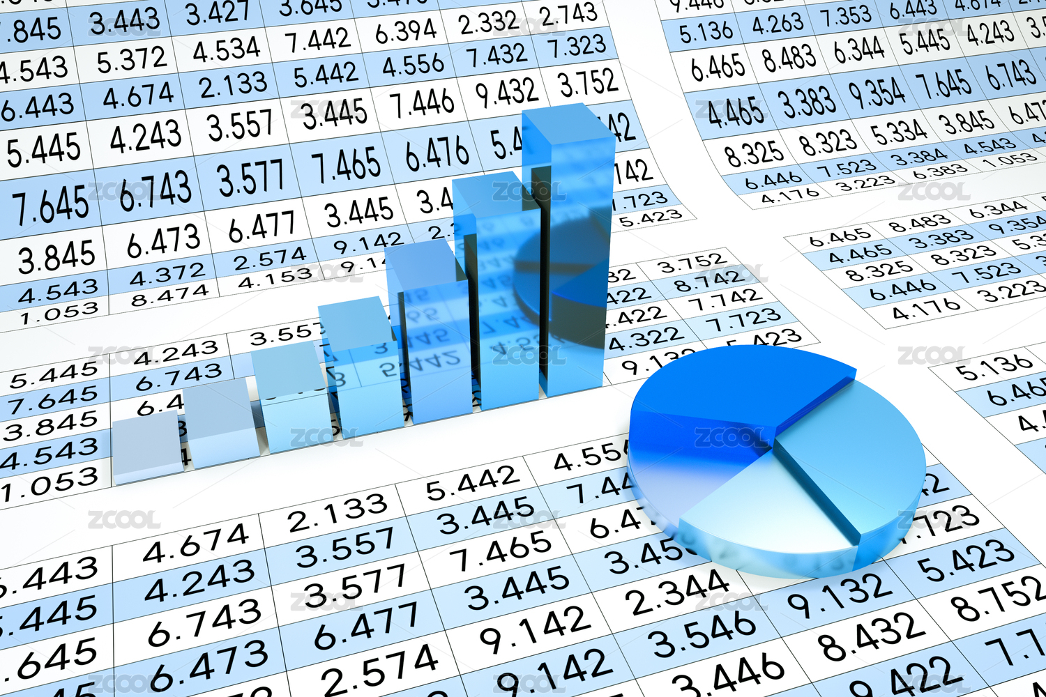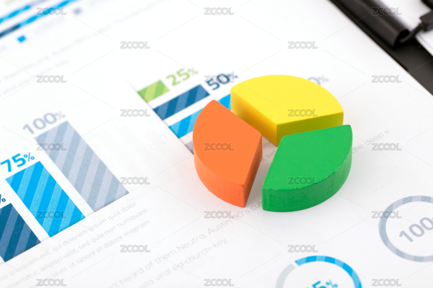 金融经济财务报表报告统计数据下的饼状图饼形图和柱状图增高的趋势