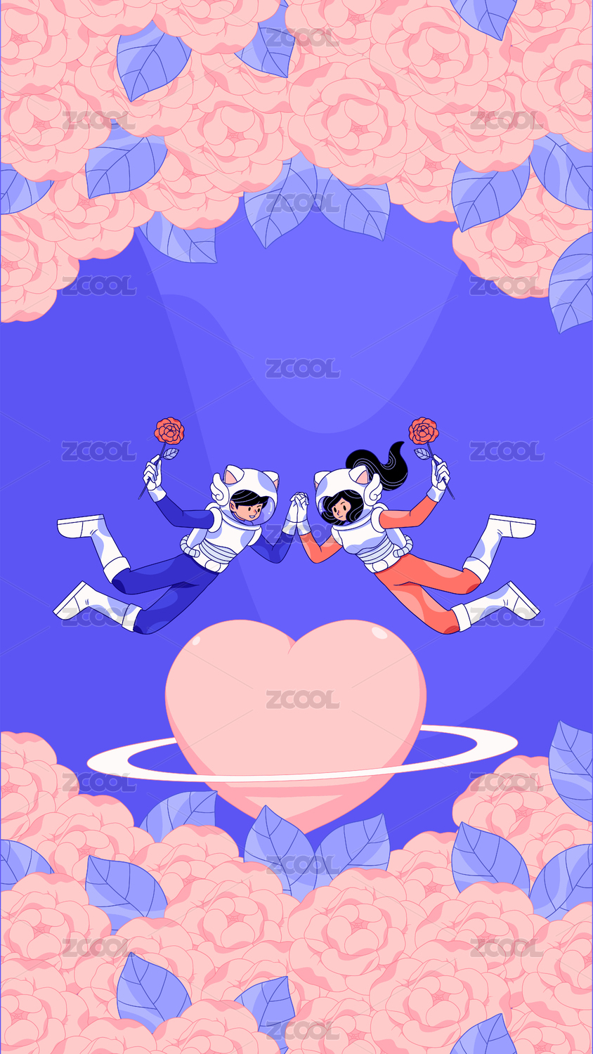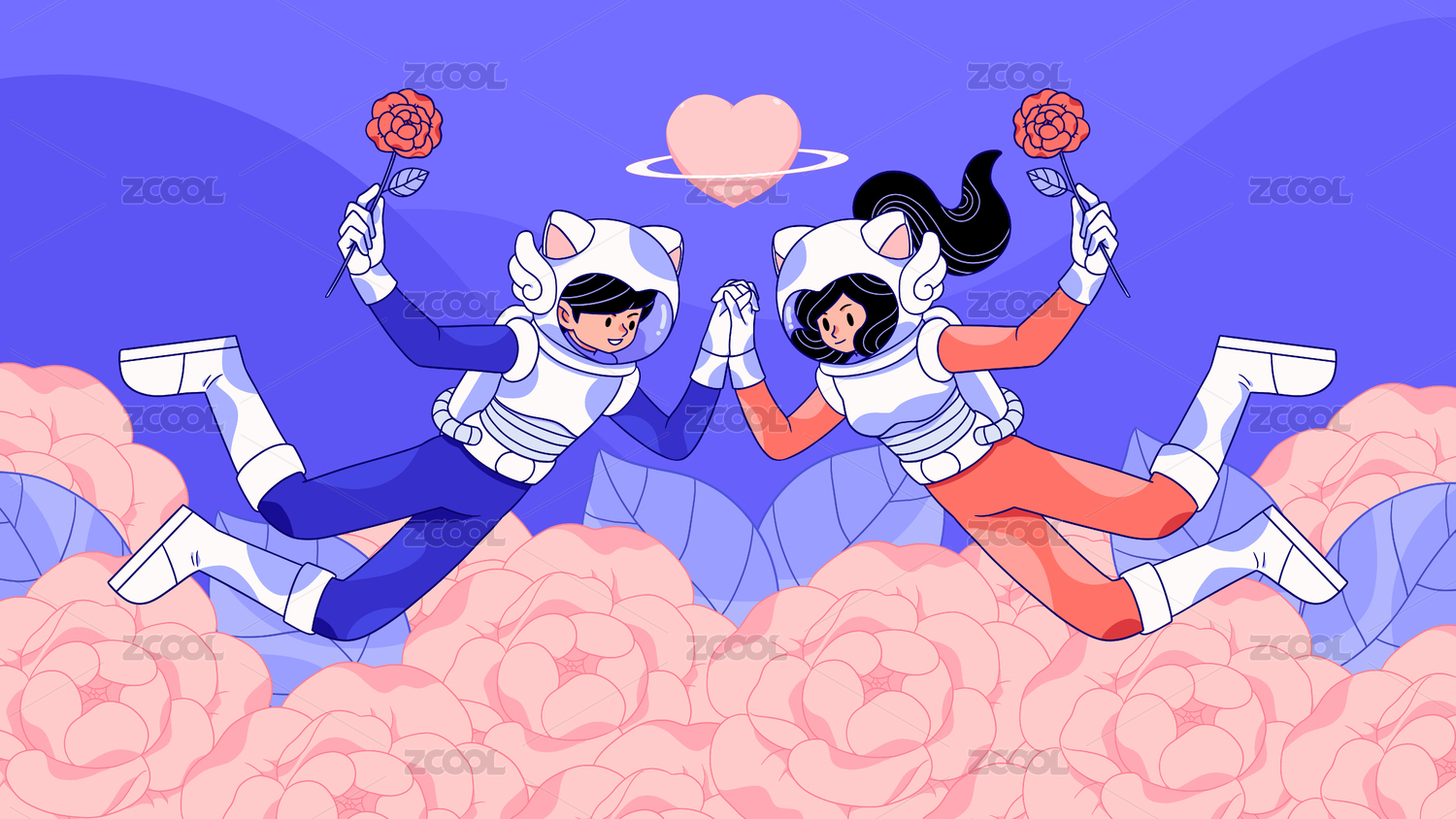 手拿玫瑰身穿宇航服的情侣