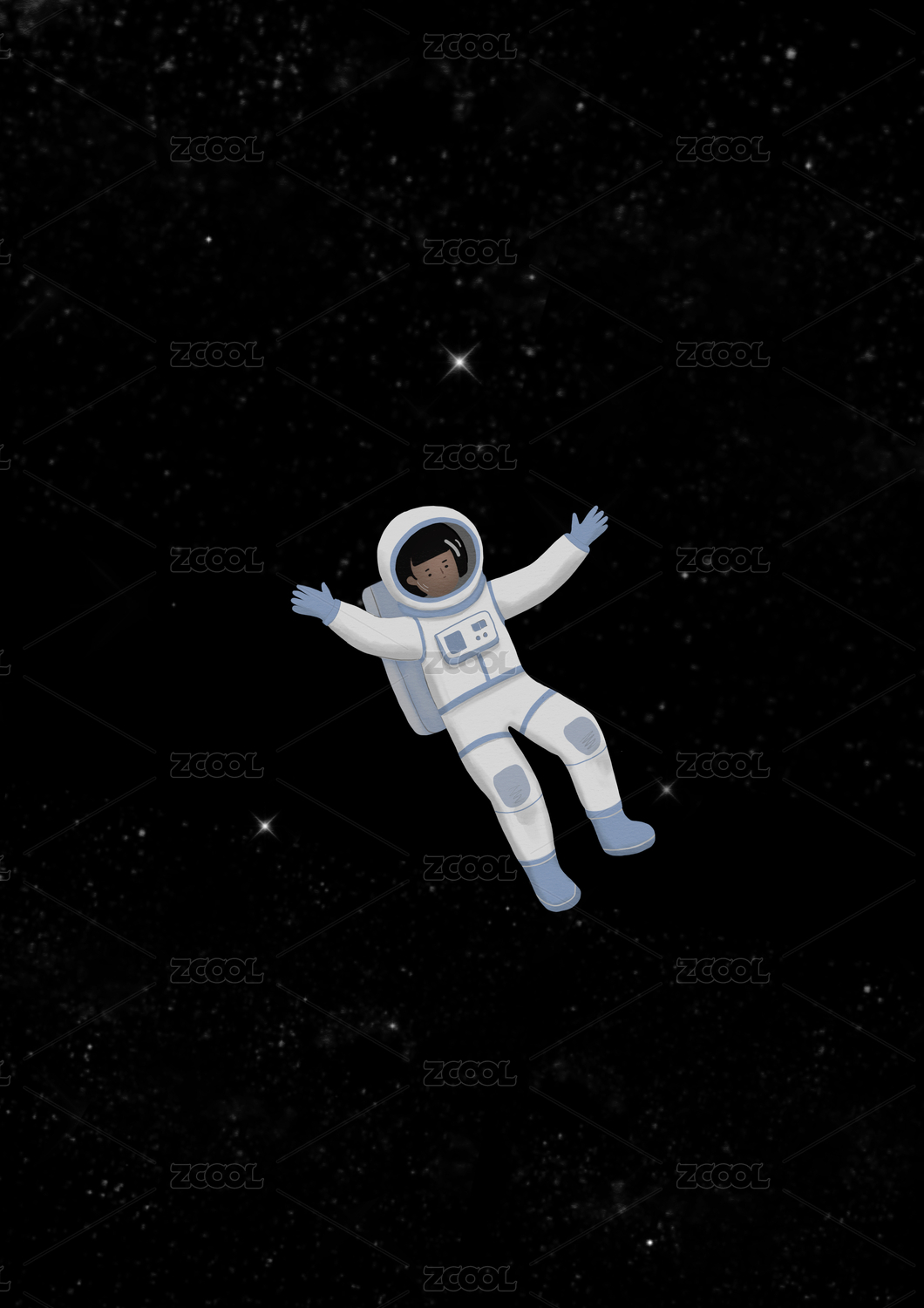 男孩穿着宇航服飘在太空中