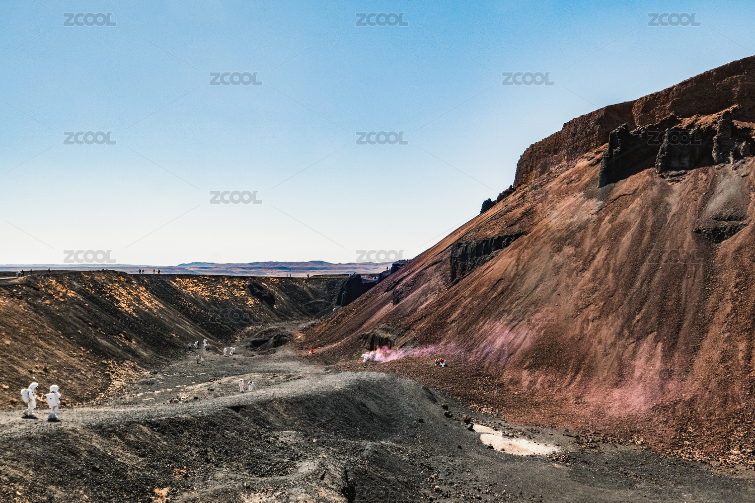 乌兰察布乌兰哈达6号火山下游客穿着宇航服
