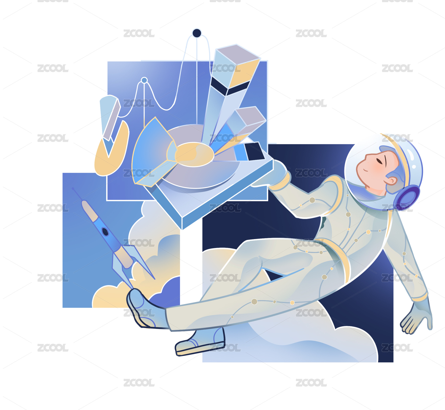 蓝色背景上的白色宇航服的航天员