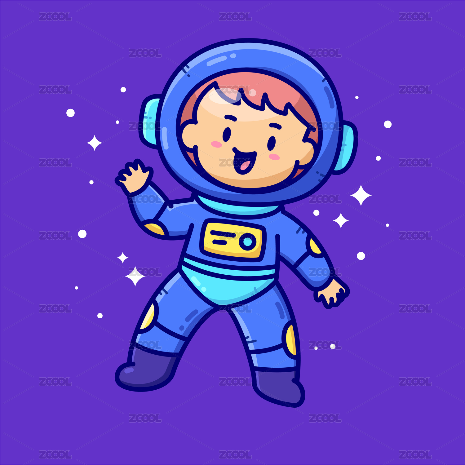 小男孩穿着宇航服矢量插画