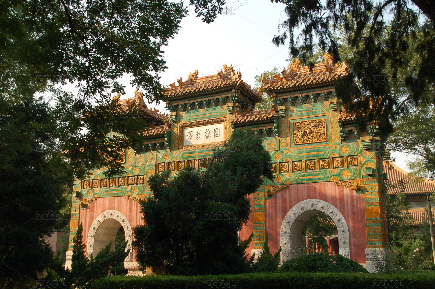 中国北京国子监孔庙琉璃牌坊建筑风光