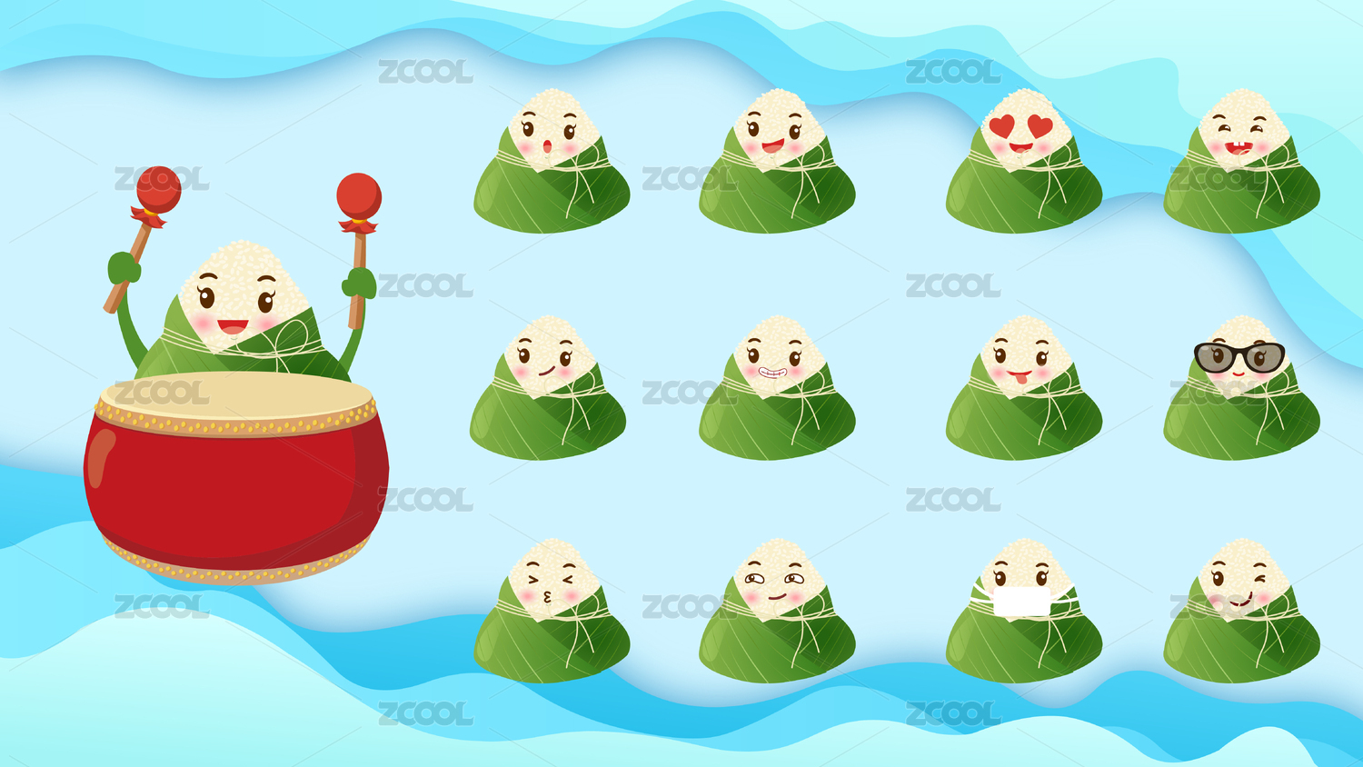 端午节可爱粽子宝宝敲和糯米表情插画矢量图
