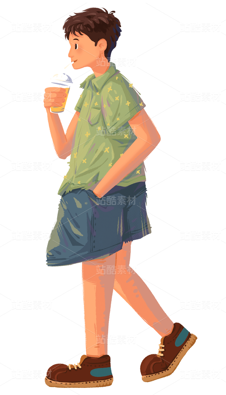 喝奶茶的男生